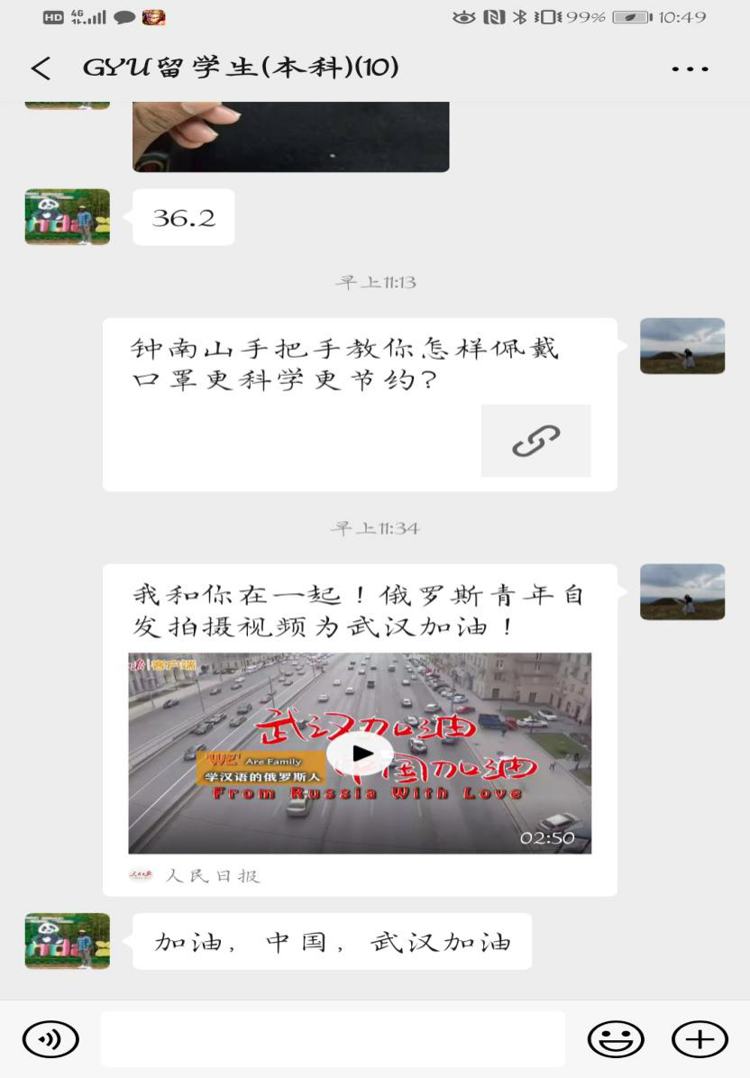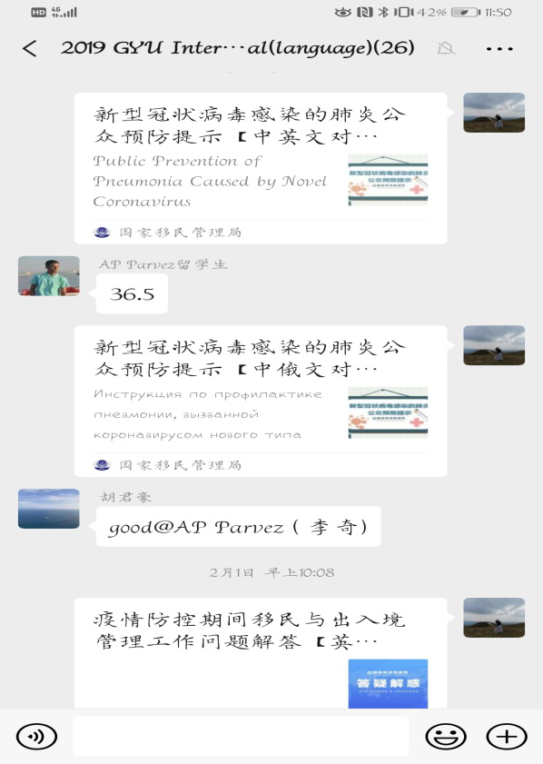 (国际处老师每日在留学生和外教微信群内发送各种为疫情信息)