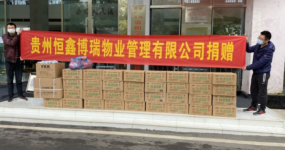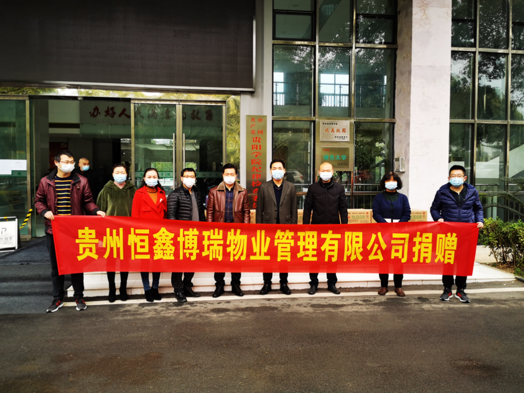 大疫面前,大爱浮现,面对新冠肺炎疫情防控工作没有局外人。贵州恒鑫博端物业管理有限公司在了解到学校防疫物资匮乏的现状后,经多方筹措,3月16日,该公司将5000个医用防护口罩、40件消毒水捐赠给学校,以帮助我校有效实施疫情防控。韩勇副校长及保卫处相关负责人代表学校接受捐赠。