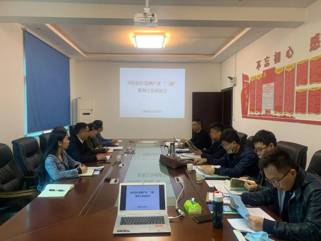 3月27日,开阳县硒产业发展中心邀请贵阳学院食品与制药工程学院马立志院长、程永友博士、许粟博士、陈海江博士、马风伟博士等专家组一行7人赴开阳开展关于完善开阳县硒产业产品链、食品链、品牌链“三链”策划工作座谈会,为开阳硒产业“三链”建设把脉。