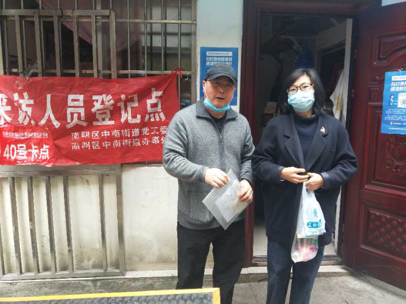 13日,党委组织部部长闻广、工会主席黄江发、副主席粟敏到各卡点看望志愿者们,并发放酒精消毒液、免洗抑菌洁手液、防感香囊等防护用品。