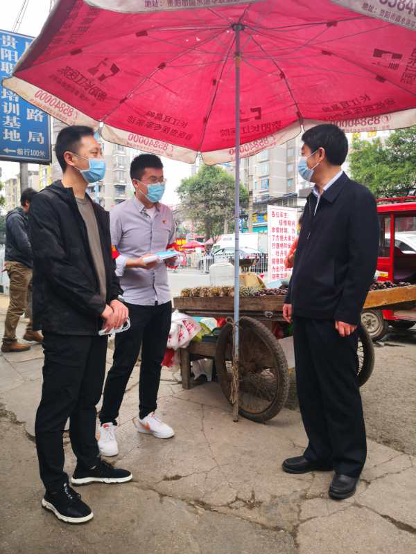 4月13日,我校第十批干部职工志愿者分赴南明区二戈寨街道办事处、中华南路街道办事处各疫情防控卡点,担任“筑城抗‘疫’志愿攻坚队”队员,开展阻击疫情志愿服务活动。他们是马克思主义学院副院长周玲、教务处教学管理科科长吴俨、党委组织部张钰玉、保卫处李知强四位同志。