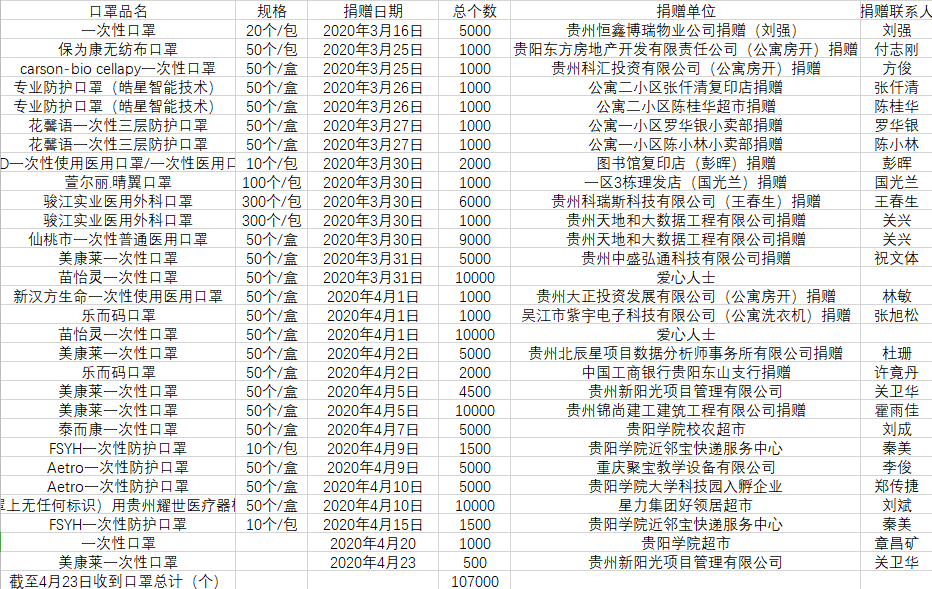 据悉,自新冠肺炎疫情发生以来,我校陆续收到来自社会各方的爱心捐赠,截止到4月23日,我校共收到来自27家爱心企业和爱心人士107000个捐赠口罩。