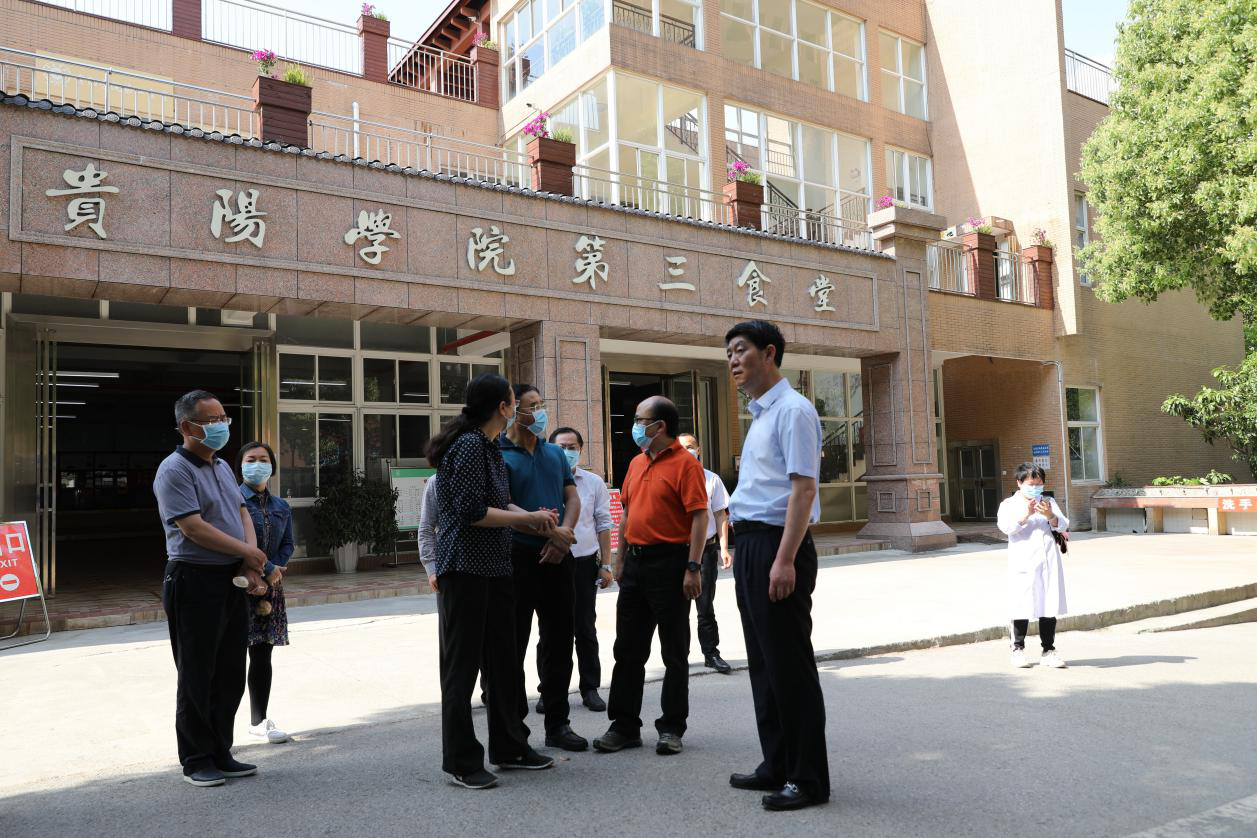 5月4日,贵阳市市委常委、常务副市长徐昊率市政府副秘书长李波、市直相关部门负责同志,到我校检查疫情防控和开学准备工作。徐昊先后来到隔离区、学生公寓、校园超食堂等区域,对师生入校测温、身份核查、学生公寓和校医院疫情防控准备、学生就餐等各项工作环节进行逐一检查,并详细了解学校防控措施、物资储备、应急处置等工作落实情况。校党委书记吕保平、校长毛有碧、副校长韩勇及学校相关部门负责同志参加。