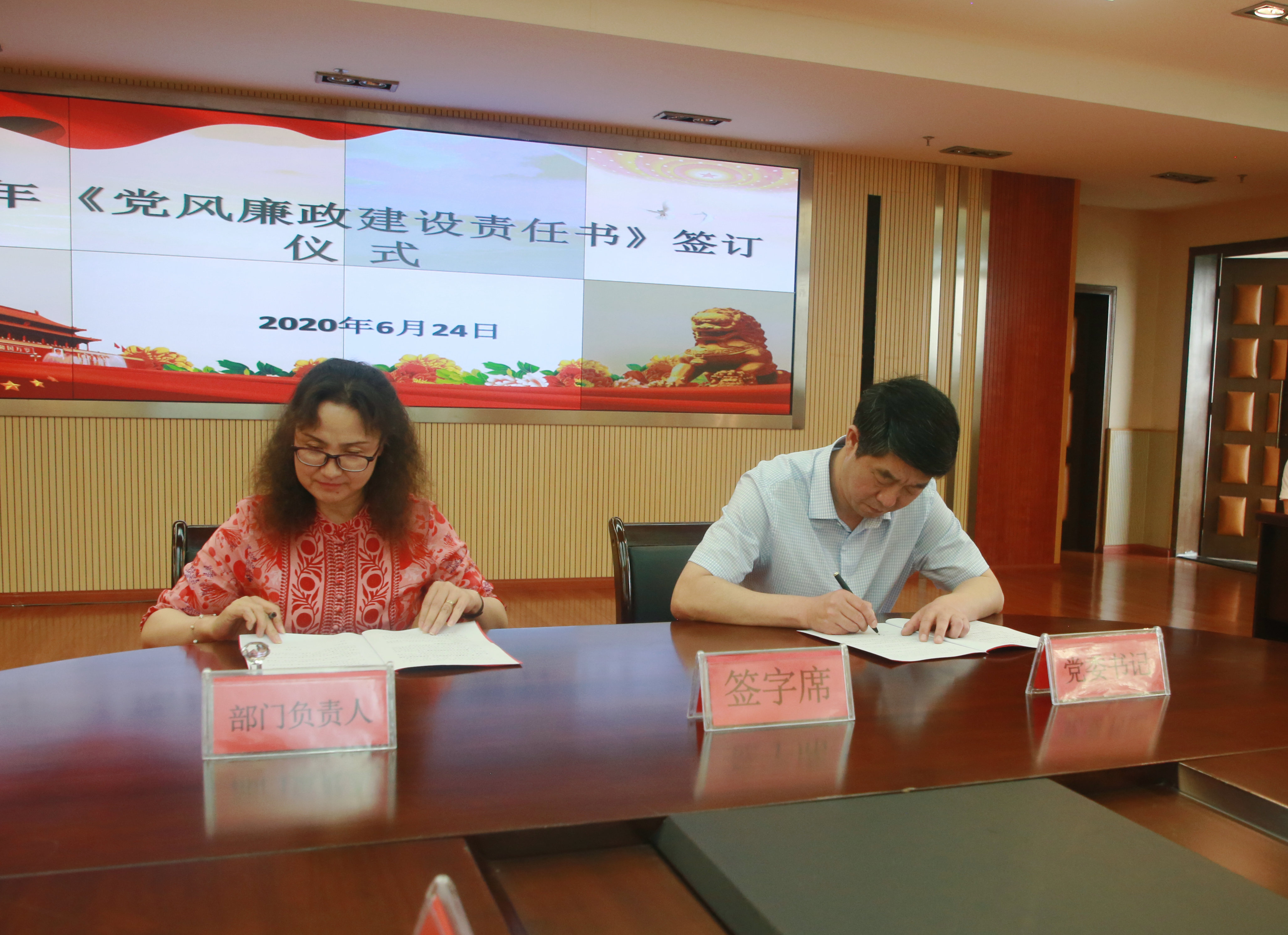 会上,党委书记吕保平与教学院党组织负责人和部门主要负责人代表签订《2020年党风廉政建设责任书》和《2020年党建工作责任书》。