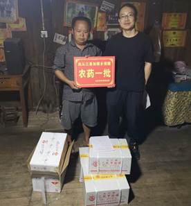 民革贵阳学院支部于7月3日15点收到药物后,立即赶往加榜乡,冒着沿途暴雨,翻山越岭,趟水过河,于3日当夜陆续向加榜乡党扭、加页、摆党三个村各发放了可施用180亩的农药,并指导农药配制及施用方法。