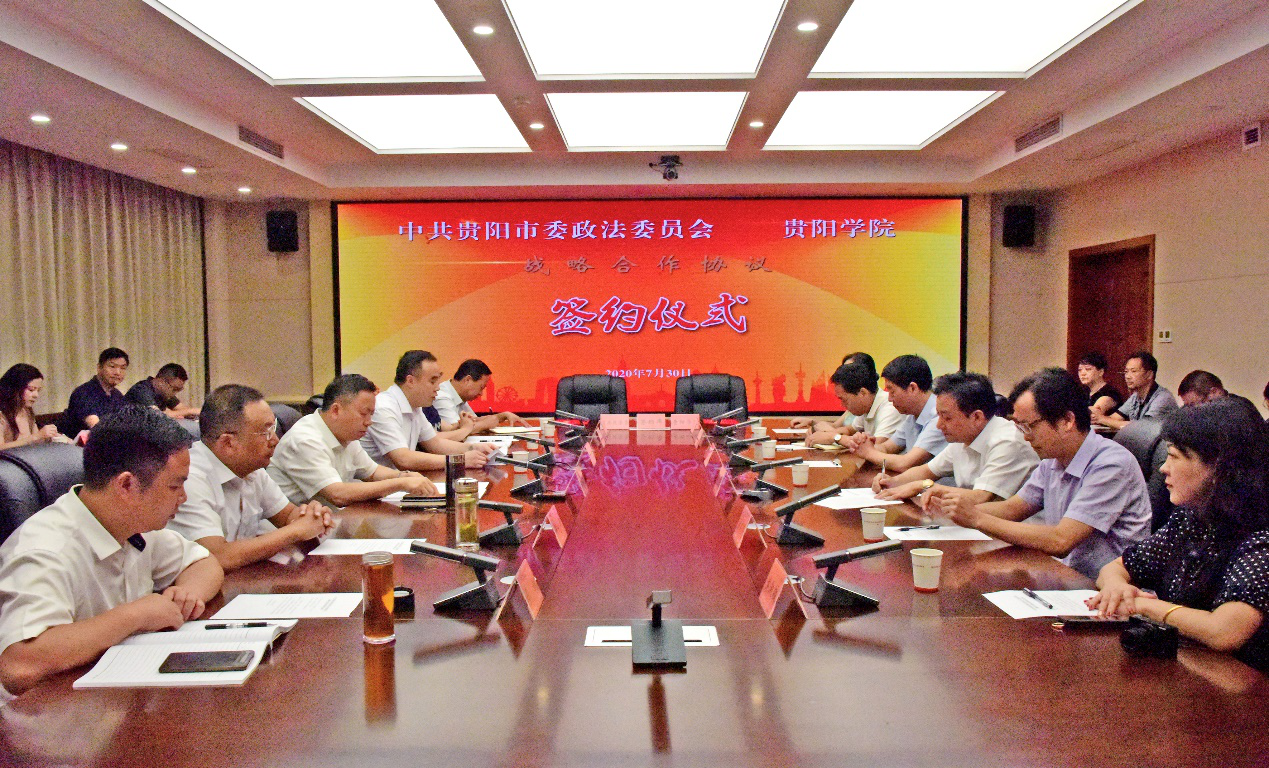 2020年7月30日,中共贵阳市委政法委员会与贵阳学院战略合作签约仪式在贵阳市政法委员会第一会议室举行。