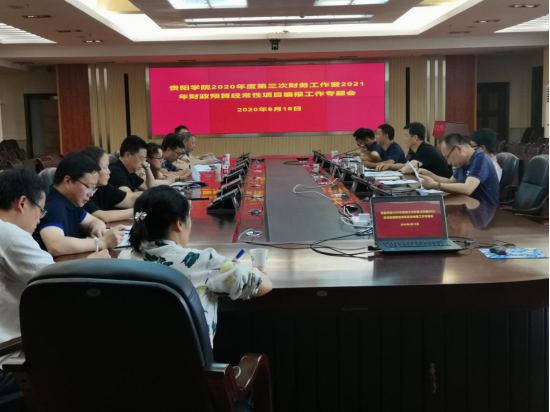 2020年8月18日下午,学校在九思楼八楼会议室召开贵阳学院2020年度第三次财务工作暨2021年财政预算经常性项目编报工作专题会。会议由刘刚副校长主持,李灿副校长出席,各职能部门主要负责人参会。