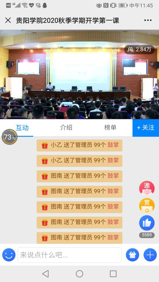 据悉,贵阳学院2020秋季学期开学第一课通过报告厅、教室和网络直播同步进行,全校师生及网络共计3万余人观看。