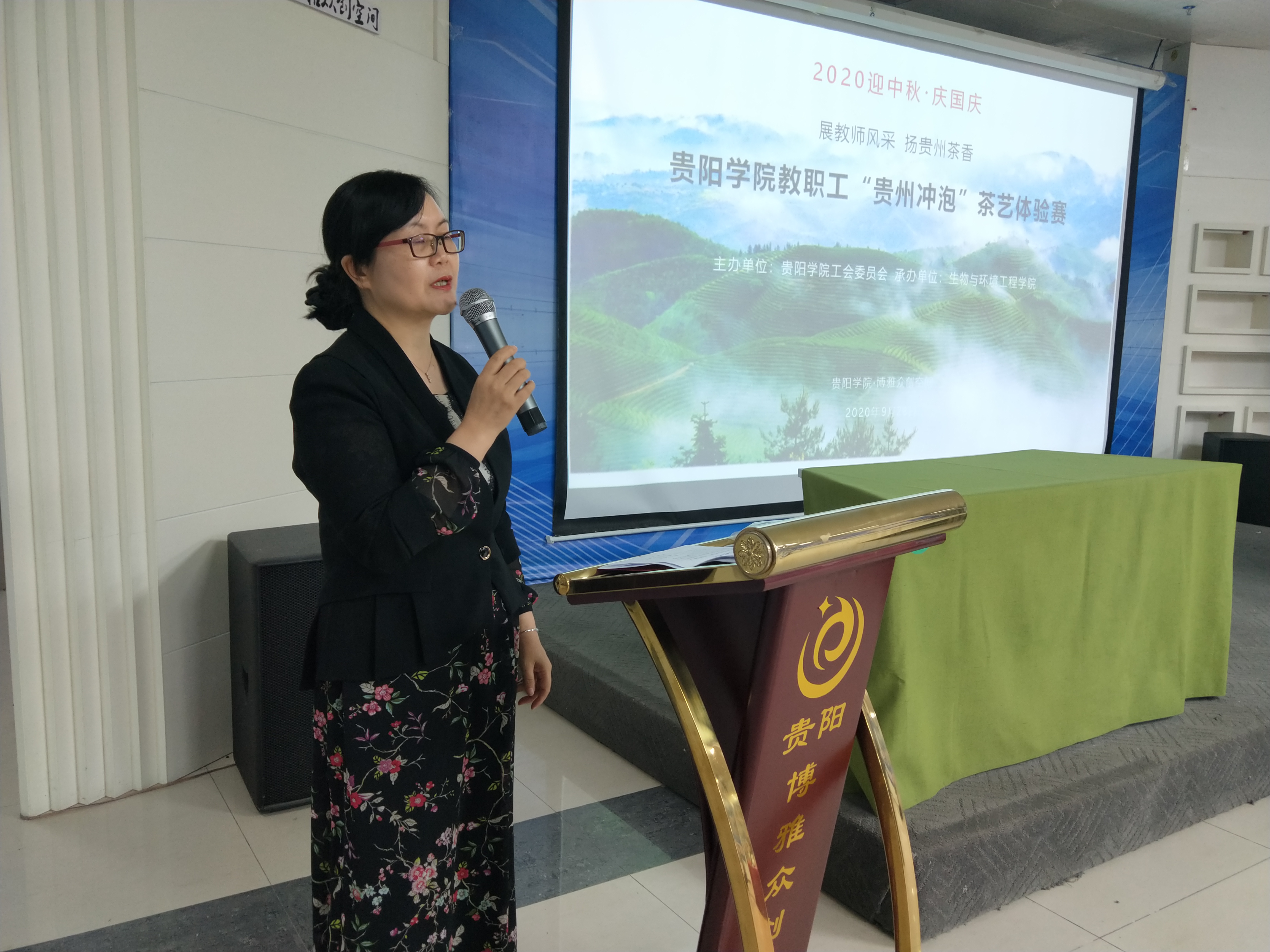 生环学院院长刘燕分别就贵州茶、贵州冲泡及比赛流程进行简介。