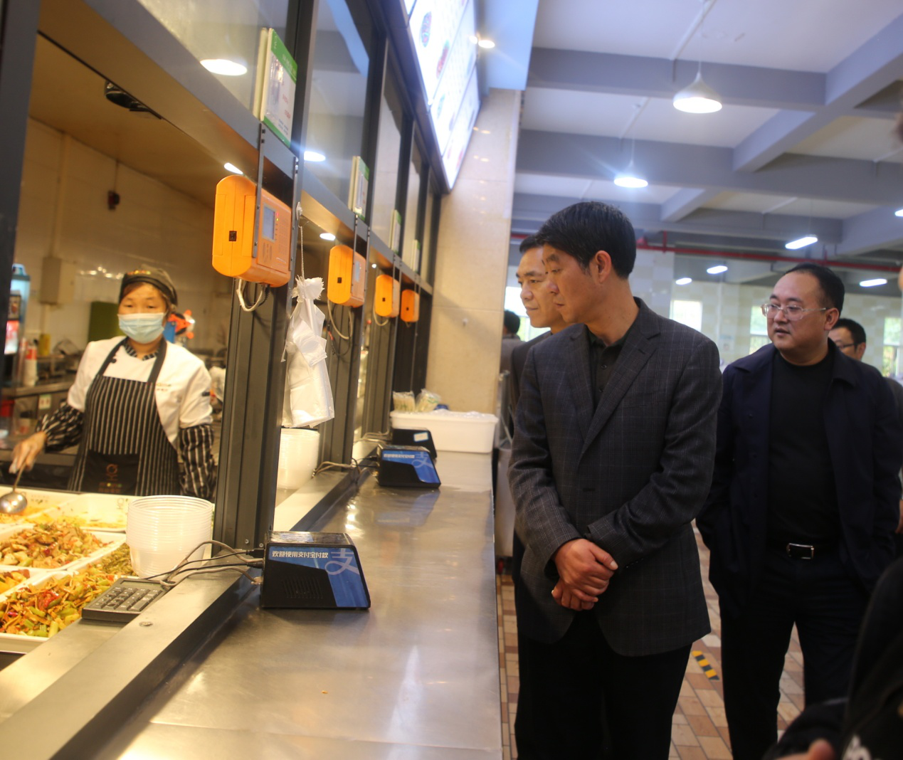 吕保平书记一行首先来到体育馆旁边的围墙,检查防护措施落实情况,要求保卫部门把围墙加固,防止学生翻越围墙,发生安全事故;随后又来到学生公寓二小区察看学生宿舍,检查超市食品。走出公寓二小区,吕保平书记又先后深入新装修过的学生浴室、第三食堂、校农结合销售部。他在仔细察看新装修的浴室后,指出浴室门外存在诸多问题,要求进行整改。在第三食堂,他察看食堂卫生状况、菜品并询问饭菜价格情况。