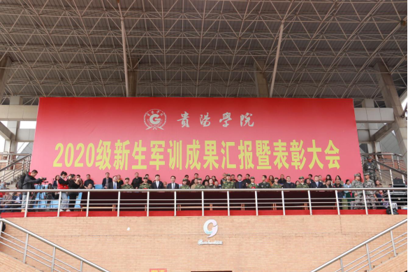 2020年10月30日上午,细雨薄雾,贵阳学院2020级新生军训成果汇报暨总结表彰大会在运动场举行。党委书记吕保平,党委副书记焦艳、赵福菓,副校长汪建初、韩勇,纪委书记马力,副校长刘刚、南明区军训办公室主任虢继卫出席大会。学校相关职能部门负责人、各教学院党政领导、辅导员、班主任和军训教官等参加大会。大会由党委副书记赵福菓主持。