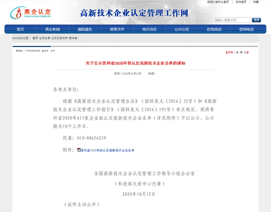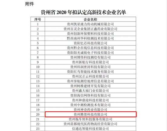 2020年10月12日,由全国高新技术企业认定管理工作领导小组办公室发布的《关于贵州省2020年拟认定高新技术企业名单的通知》中,贵阳学院大学科技园孵化的企业“贵州腾景科技有限公司”和“贵阳艾因飞生物技术有限公司”两家企业名列其中。