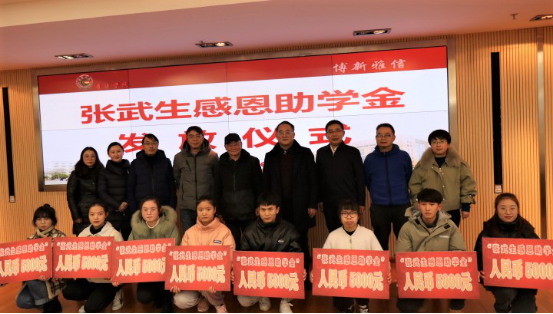 12月16日下午2点30分,我校在九思楼八楼会议室举行张武生感恩助学金发放仪式。发放仪式由学生工作处副处长余雪玉主持,出席本次仪式的有:贵阳学院党委副书记赵福菓、张武生感恩助学金捐赠人张武生先生、学生工作处处长倪秀坤、数信学院党总支书记陈治友、院长顾大刚、学生工作处副处长杨利军、学生资助管理中心主任吴丹凤和学生资助管理中心葛慧老师。