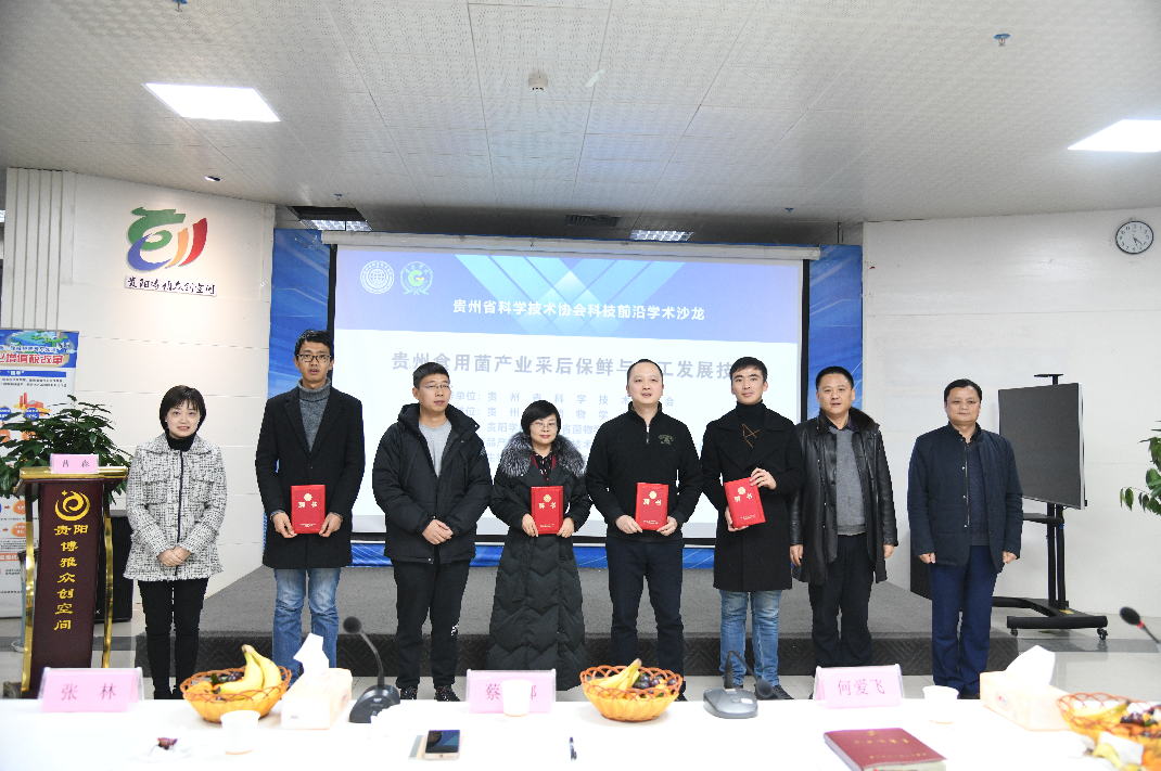 2020年12月11日,“贵州食用菌产业采后保鲜与加工发展技术”学术沙龙在贵阳学院大学科技园顺利召开。本次学术沙龙由贵州省科学技术协会指导,贵州省菌物学会主办,贵阳学院、贵州省菌物学会加工产业分会、贵州省农产品产地初加工关键技术研发与应用科技创新基地、贵州省山地生物资源保护与高效利用工程中心共同承办。贵州省科学技术协会学术部副部长蔡娜同志为沙龙致开幕辞,贵州省食用菌工作专班副班长、贵州省黔农融资信用担保中心何爱飞副主任(主持工作)就贵州省食用菌产业现状、目标及对采后贮藏与加工需求做简要介绍,贵阳学院李灿副校长致欢迎辞,贵州省菌物学会理事长朱国胜研究员为学会日常工作开展及“贵州省菌物学会加工产业分会”成立讲话。