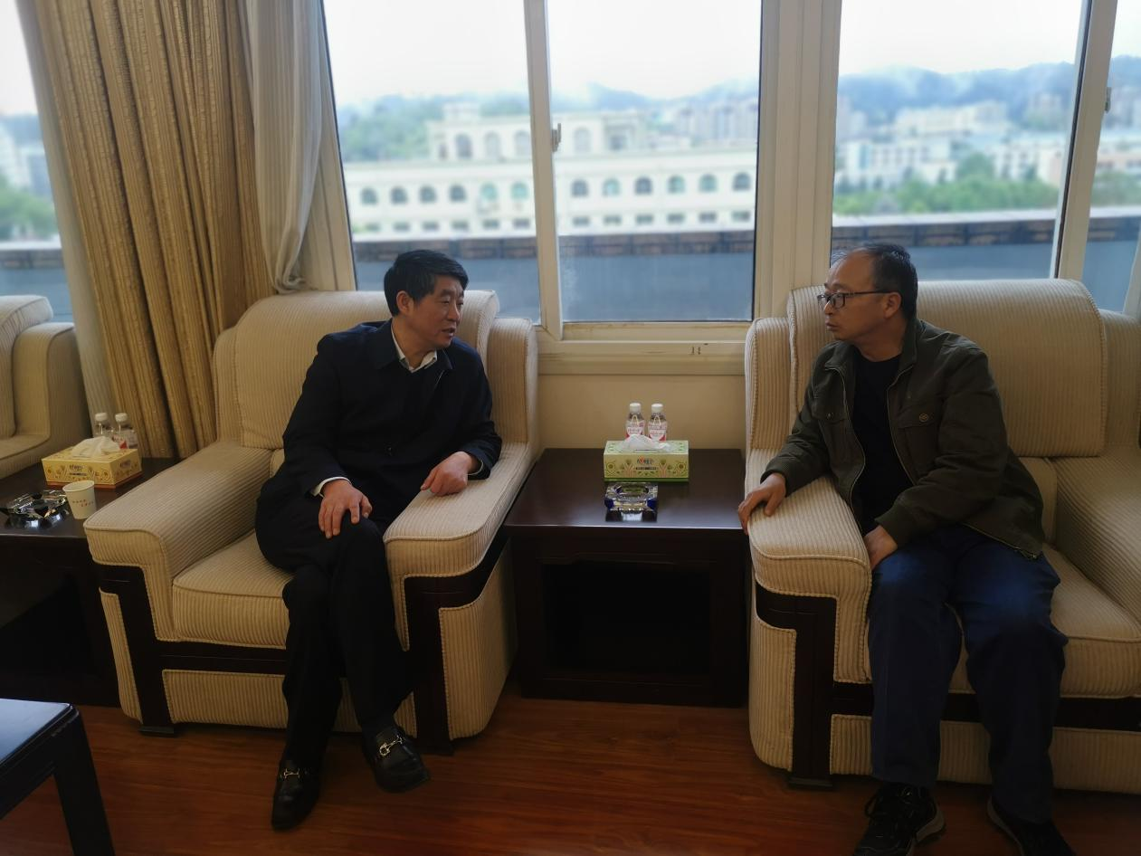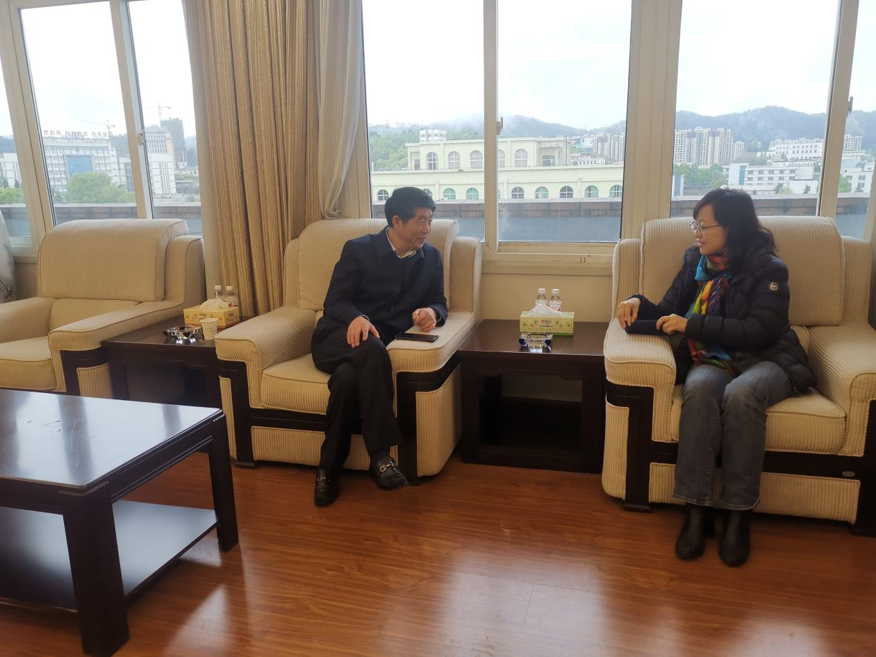 2021年4月7日上午,党委书记吕保平同志在九思楼七楼贵宾室与贵阳市政协常委、民盟贵阳市委副主委潘锦、九三学社市委主委、贵阳市政协常委、南明区人大代表、贵阳市留联会会长、九三学社贵阳学院支社主委陈雨青亲切座谈。