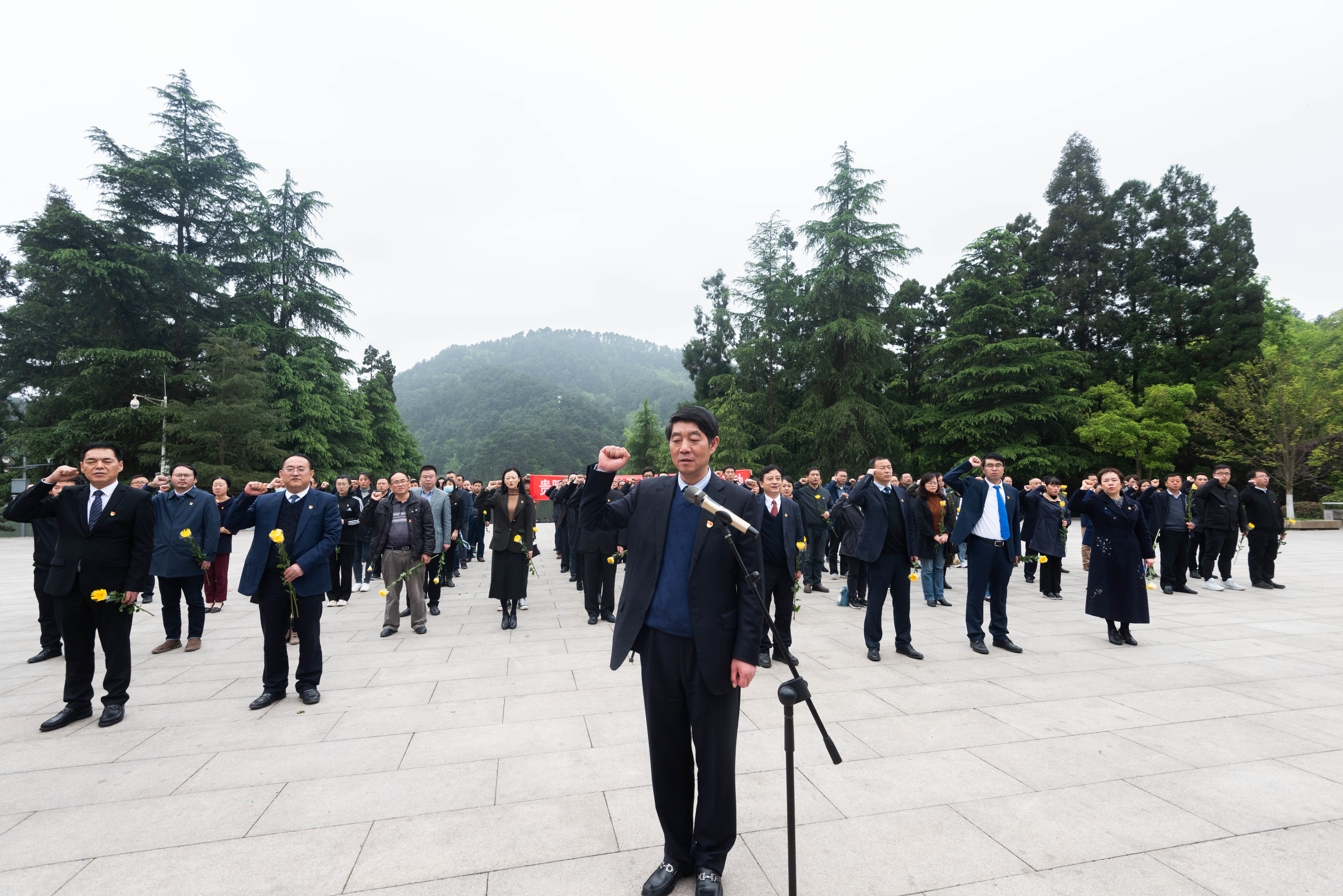 4月15日,贵阳学院清明祭英烈暨讲党史学党史主题活动在黔灵公园解放贵州革命烈士纪念碑前举行。贵阳学院党委书记吕保平、校长向淑文,全体在家校领导出席本次活动,全校副处级以上干部及学校师生党员代表150余人参加活动。