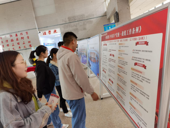 宣传周上,吕保平、焦艳带领统战部工作人员一同为师生发放《贵阳市创建全国民族团结进步示范市工作百问》手册和《中国共产党统一战线条例》。