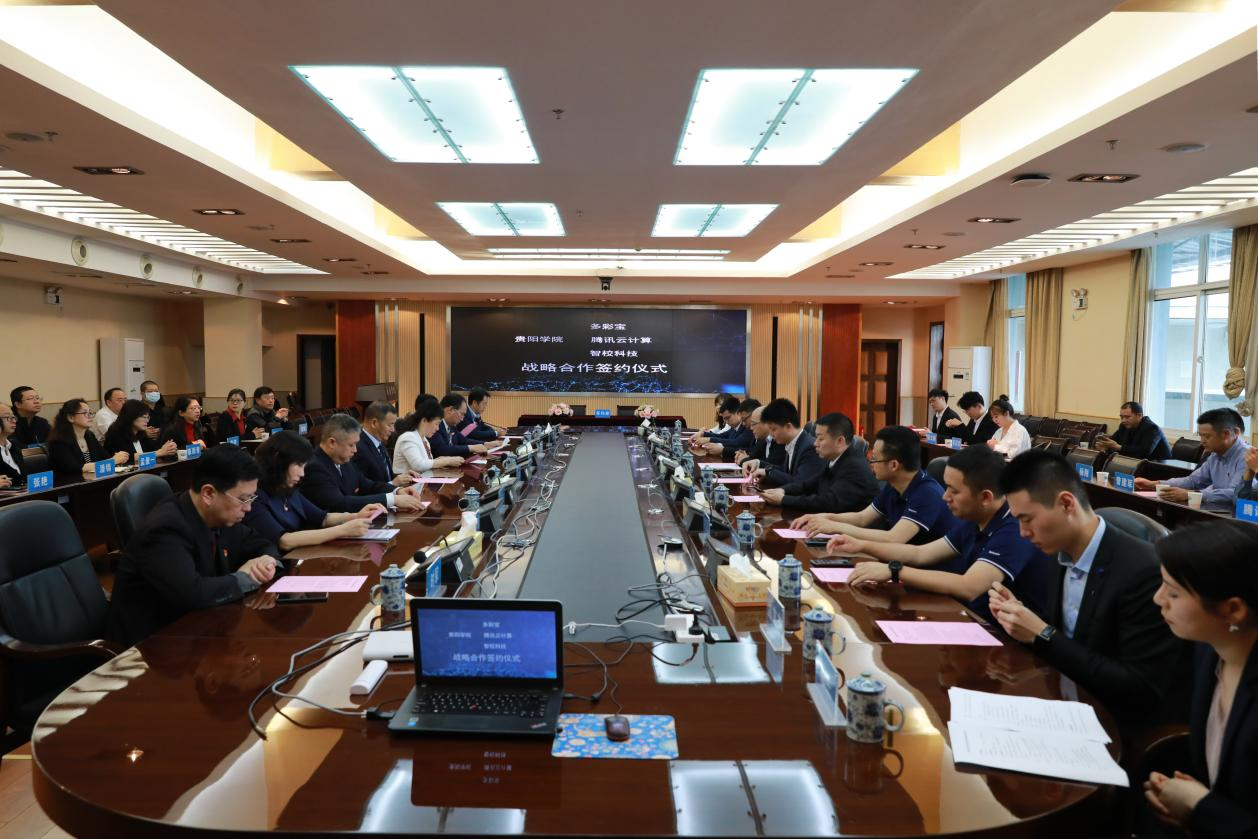 5月27日,我校与腾讯云计算(北京)有限责任公司在九思楼八楼会议室签订战略合作协议。腾讯云华西区产业生态副总经理章赖宁、腾讯云贵州生态合作总监沈文杰,贵阳学院党委副书记焦艳、贵阳学院党委副书记赵福菓、贵阳学院副校长汪建初、贵阳学院副校长韩勇、贵阳学院纪委书记马力出席签约仪式。签约仪式由赵福菓主持。
