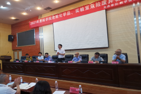 蔡永祥、陈国志警官针对“易制毒”、“易制爆”管控类危险化学品从以下几个方面提出要求:采购、备案、领用等流程必须严格按照相关管理规定执行,开设实验课程现场必须老师值守,不允许学生直接接触高浓度危险化学品,危险化学品台账必须准确、及时记录流向、流量。同时两位警官还结合实际案例,对照相关法律法规条款,对我校教师和学生作警示教育讲话,要求全校师生重视实验室安全。