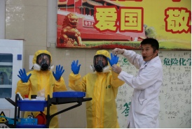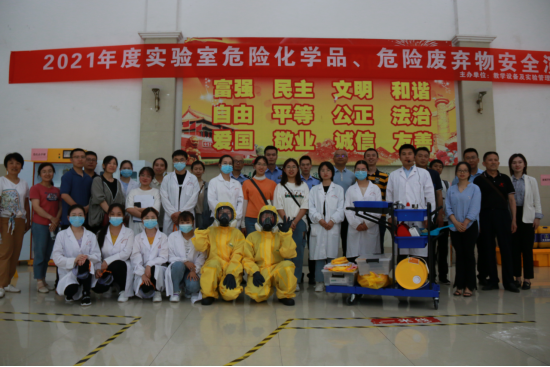 安全应急演练通过模拟我校实验室环境,在我校师生的配合下,结合专业应急设施,生动地演练了一次“实验室浓盐酸被不小心打翻掉到地上”实验室安全事故发生后的紧急救援、疏散逃生、事故报告、警戒隔离、现场处理等各环节的标准操作流程。