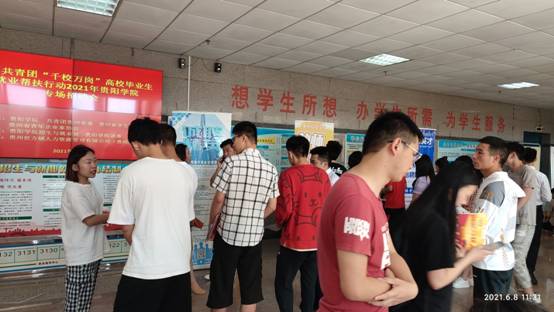 6月8日 ,联合共青团贵州省委举办贵州共青团“千校万岗”高校毕业生就业帮扶行动2021年贵阳学院专场招聘会。此次活动邀请了66家民营企业参会,提供2592个岗位。