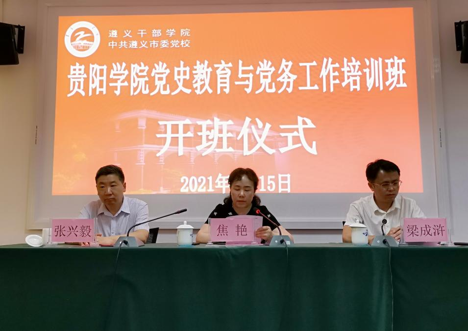 7月15日上午,贵阳学院为期五天的党史教育与党务工作培训班在遵义干部学院开班。贵阳学院党委副书记焦艳、中共遵义市委党校教育长张兴毅出席开班仪式,开班仪式由贵阳学院党委办公室主任梁成浒主持。贵阳学院51名党员干部参加培训。