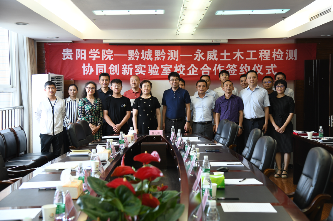 2021年7月13日下午2点,贵阳学院与贵州永威生物科技有限公司(贵阳学院—双龙科技企业孵化器企业)、贵州黔城黔测检测技术有限公司(贵阳学院大学科技园企业)校企合作共建《贵阳学院-黔城黔测-永威土木工程检测协同创新实验室》签约仪式在贵阳学院九思楼七楼会议室举行。