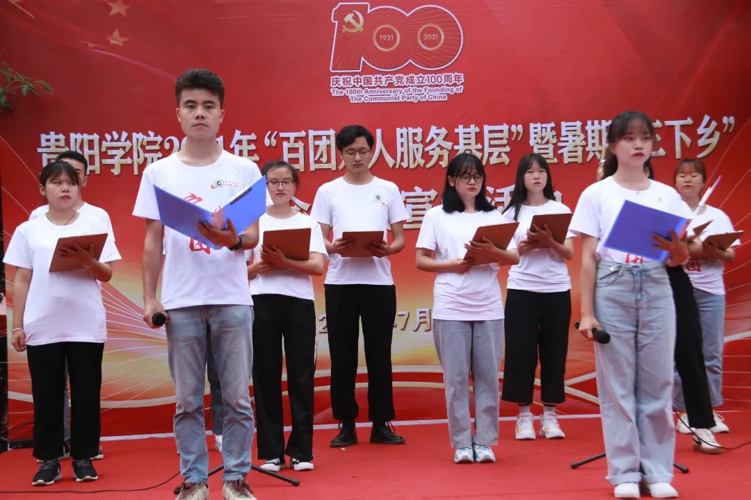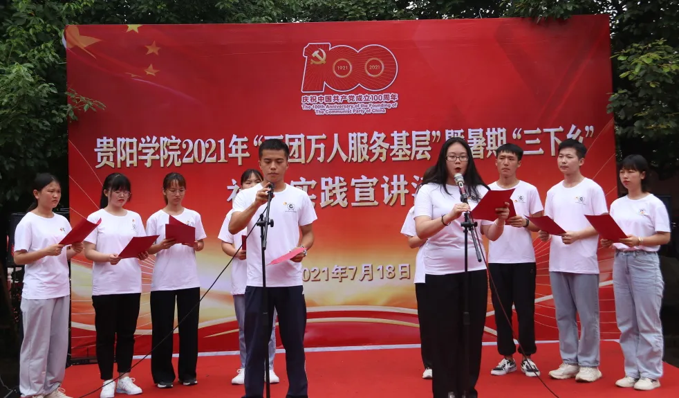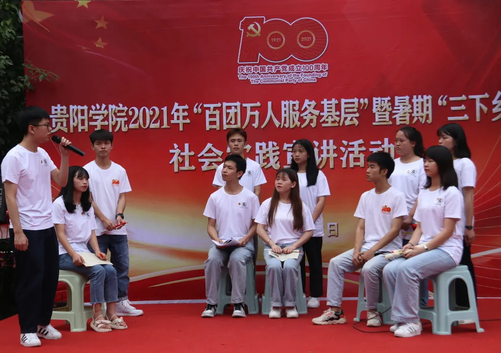 “百年征程波澜壮阔,百年初心历久弥坚”。7月18日上午,在校团委书记彭钟山、校团委副书记黄明珠及校团委老师的带领下,由贵阳学院70名师生组成的实践队伍从贵阳学院出发抵达清镇市卫城镇贺龙广场开展活动。本次活动为庆祝中国共产党成立100周年,也让广大人民群众深入了解党史,领悟党的精神品格,聆听党的英雄故事,贵阳学院成立党史理论宣讲团,深入群众进行党史宣讲。