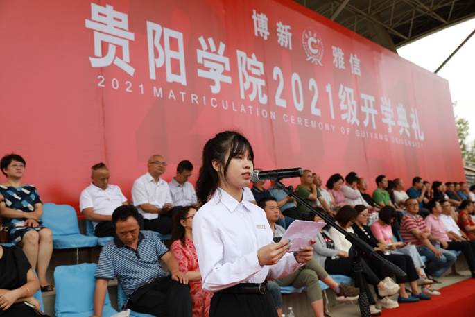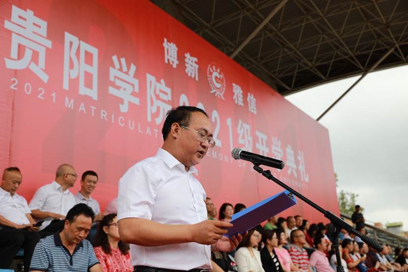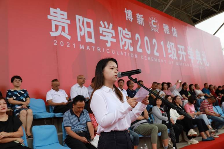 赵福菓在主持典礼时表示,贵阳学院因同学们的到来而倍感荣幸,相信同学们的到来将为美丽的贵阳学院校园注入更多的活力与精彩。希望同学们秉承学校校训精神,乘风破浪,砥砺奋进,努力在新时代报效祖国的奋斗中彰显青春风采。