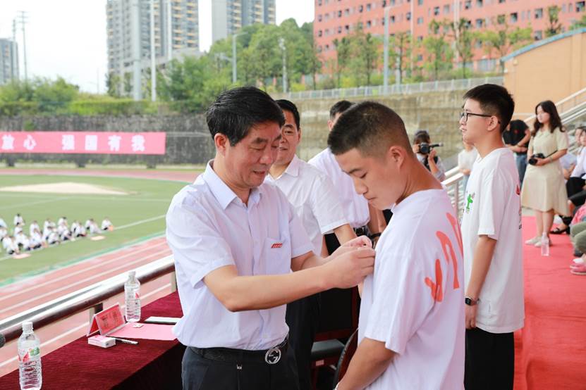 校领导为2021级新生代表佩戴校徽