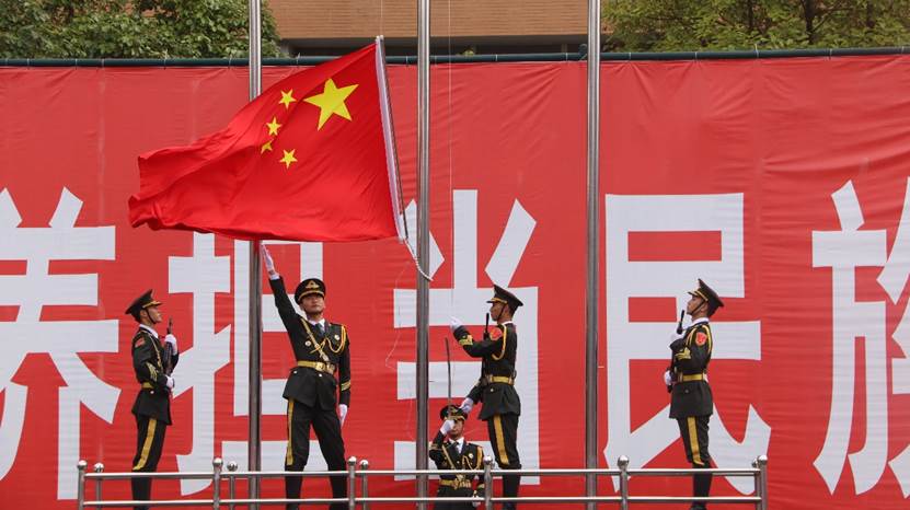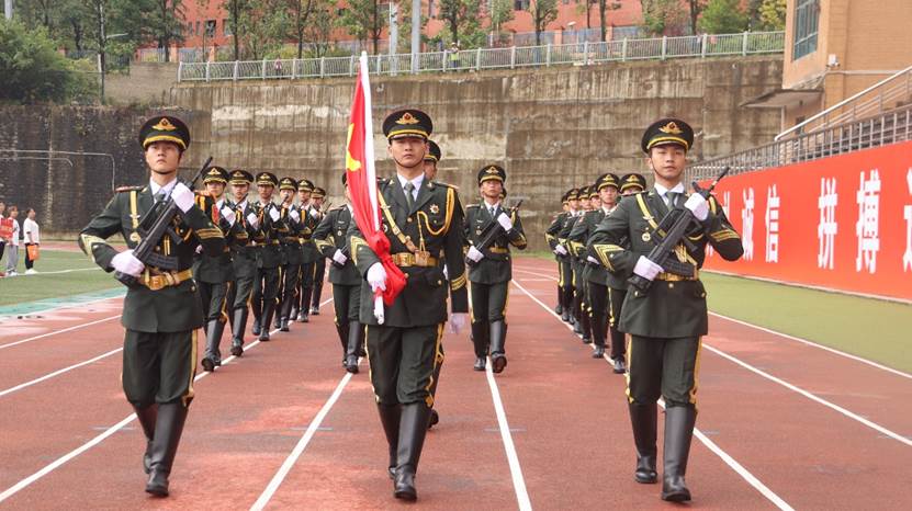 校国旗护卫队的同学升国旗