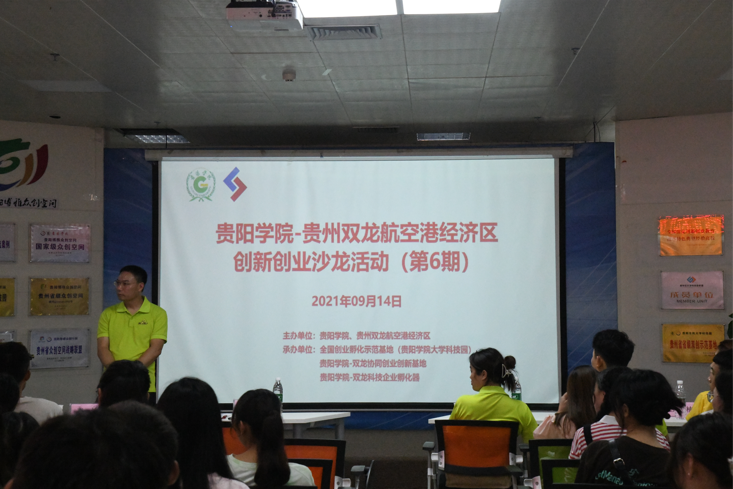 2021年9月14日,贵阳学院-贵州双龙航空港经济区创新创业沙龙(第6期)在贵阳学院大学科技园创业大厅顺利举办。本次沙龙邀请到贵州吉源实业发展有限公司魏红杰董事长在创业大厅为同学们举行了一场关于“梦想、行动、坚守”的创新创业讲座。