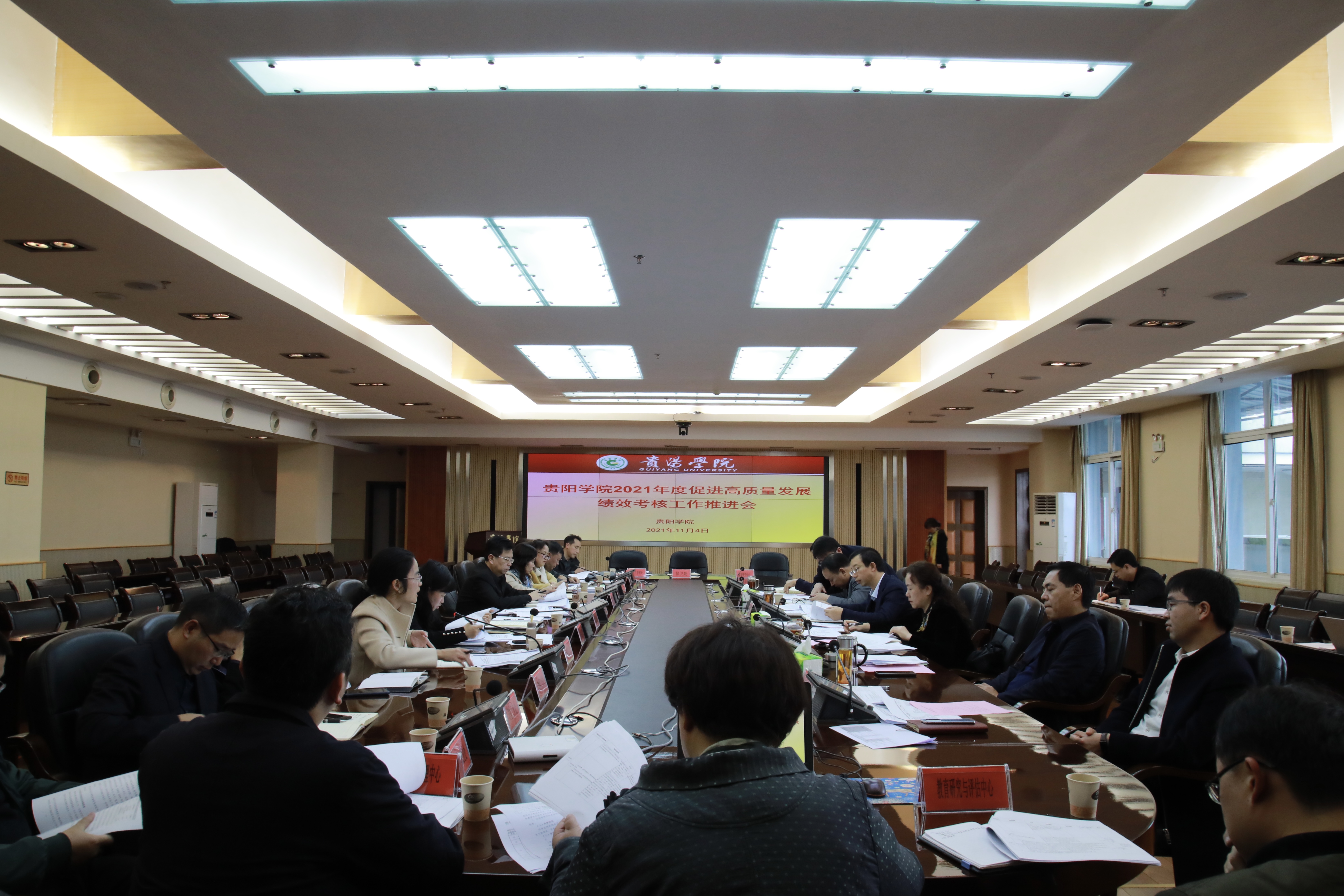 2021年11月4日上午,党委副书记、校长邓朝勇在九思楼八楼会议室组织召开贵阳学院高质量发展绩效考核工作推进会。校领导焦艳、赵福菓、韩勇、刘刚、李灿出席会议,机关党委、组织部、宣传部、院办、人事处、计财处、教务处、科技处、研究生管理处等部门负责人参加会议。会议由党委副书记赵福菓主持。
