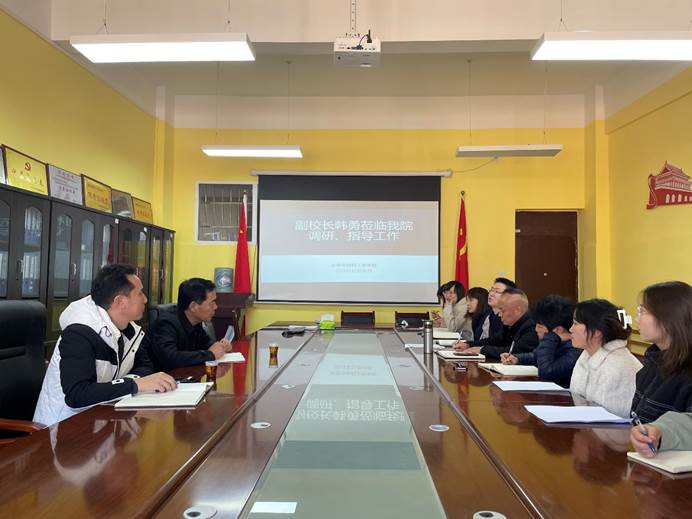 2021年11月30日下午,贵阳学院党委委员、副校长韩勇到化学与材料工程学院进行调研与指导工作,后勤管理处处长冉茂虎陪同。化学与材料工程学院党委班子成员、青年教师、班主任及学生代表参加了座谈会。