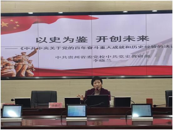 2021年12月20日,贵阳学院召开对统一战线学习中共十九届六中全会精神、《中共中央关于党的百年奋斗重大成就和历史经验的决议》的宣讲报告和研讨会。学校党委统战部邀请省委党校李晓兰教授作宣讲报告,贵阳学院党委委员,统战部长许晓璐主持。学校各民主党派、无党派人士、党外知识分子、归国留学人员代表,二级党委统战委员参加报告和研讨会。