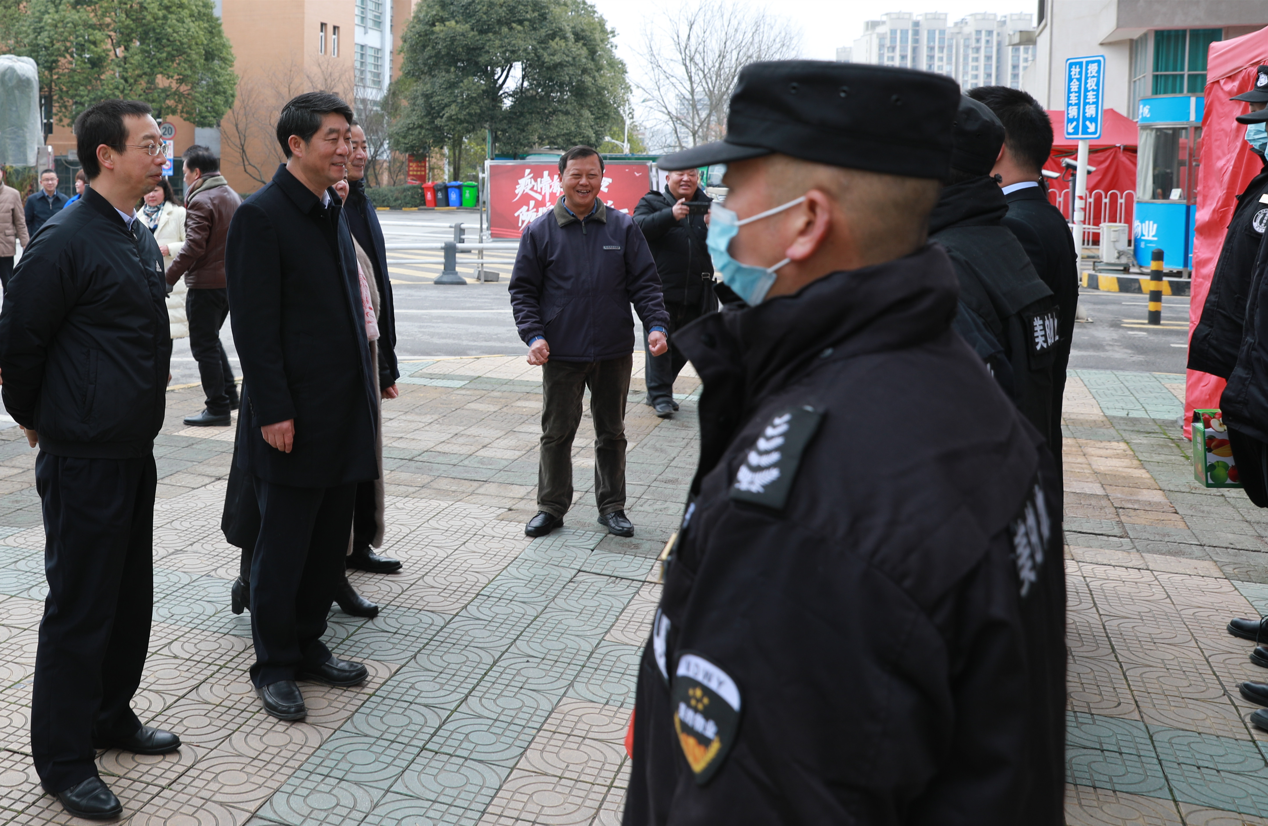 “天气冷,注意保暖,你们辛苦了。”一句句简单的叮咛,却饱含着深深的谢意与敬意。每到一处,校领导都与坚守在管理服务工作一线的教职工亲切交谈,详细询问校园各方面的运行保障情况,了解工作困难,向他们舍小家顾大家、坚守一线、履职尽责的敬业奉献精表示敬意,感谢他们为学校各项工作作出的贡献。