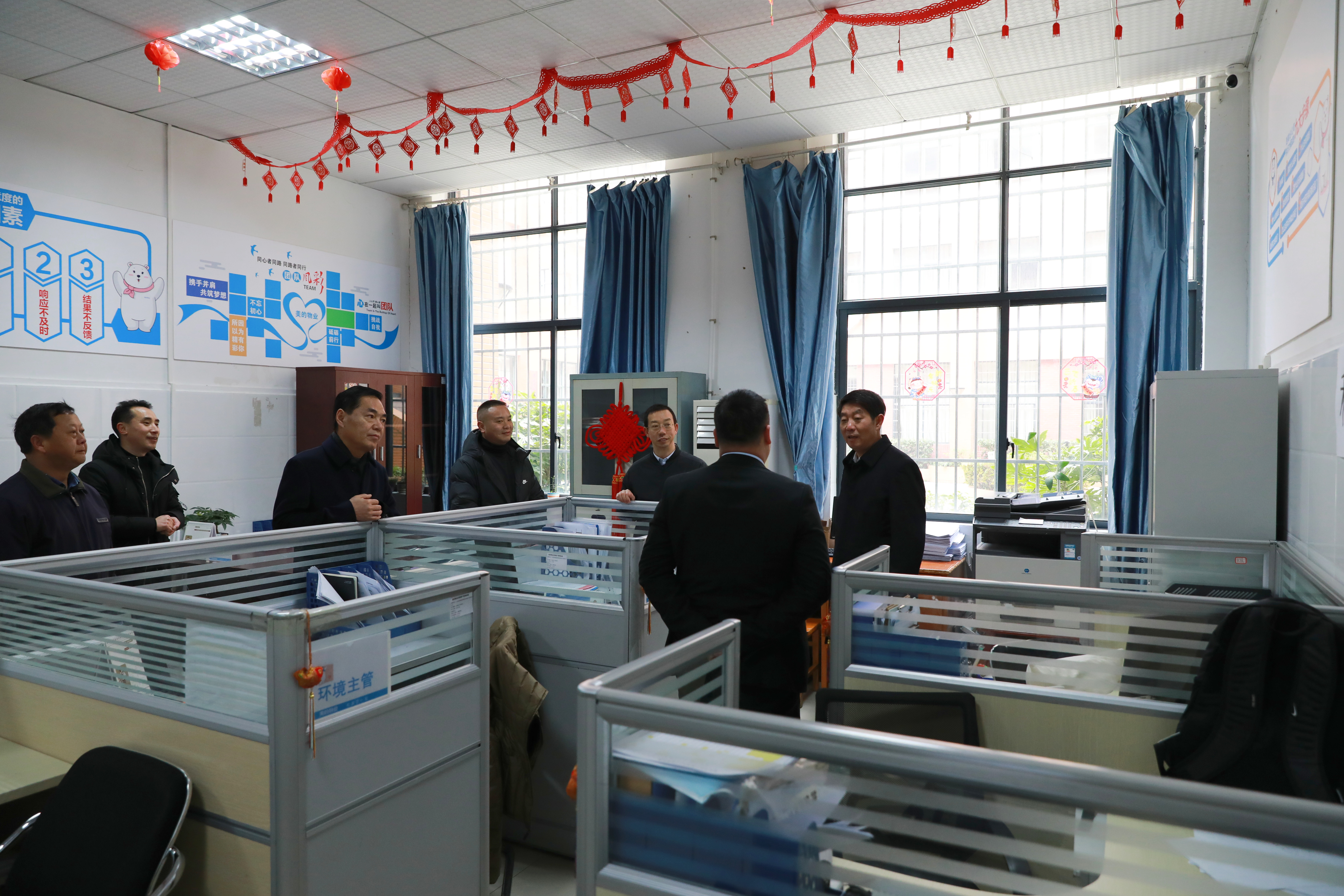 校领导一行先后来到校大门、学生公寓八栋值班室、动力科变电所、库房、三食堂、物业办、信息楼消防值班点、明理楼、九思楼,亲切慰问春节期间仍然奋战在岗位一线的教职工。
