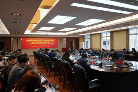 2022年3月9日上午,贵阳学院2022届毕业生就业专项工作会在九思楼八楼会议室顺利召开,校党委书记吕保平,党委副书记、校长邓朝勇,党委副书记焦艳,党委副书记赵福菓,副校长刘刚、李灿出席会议。学校16个专业学院党委书记和院长(或主持工作的副职),相关职能部门负责人,各专业学院毕业班辅导员、就业指导教师参会。会议由刘刚主持。