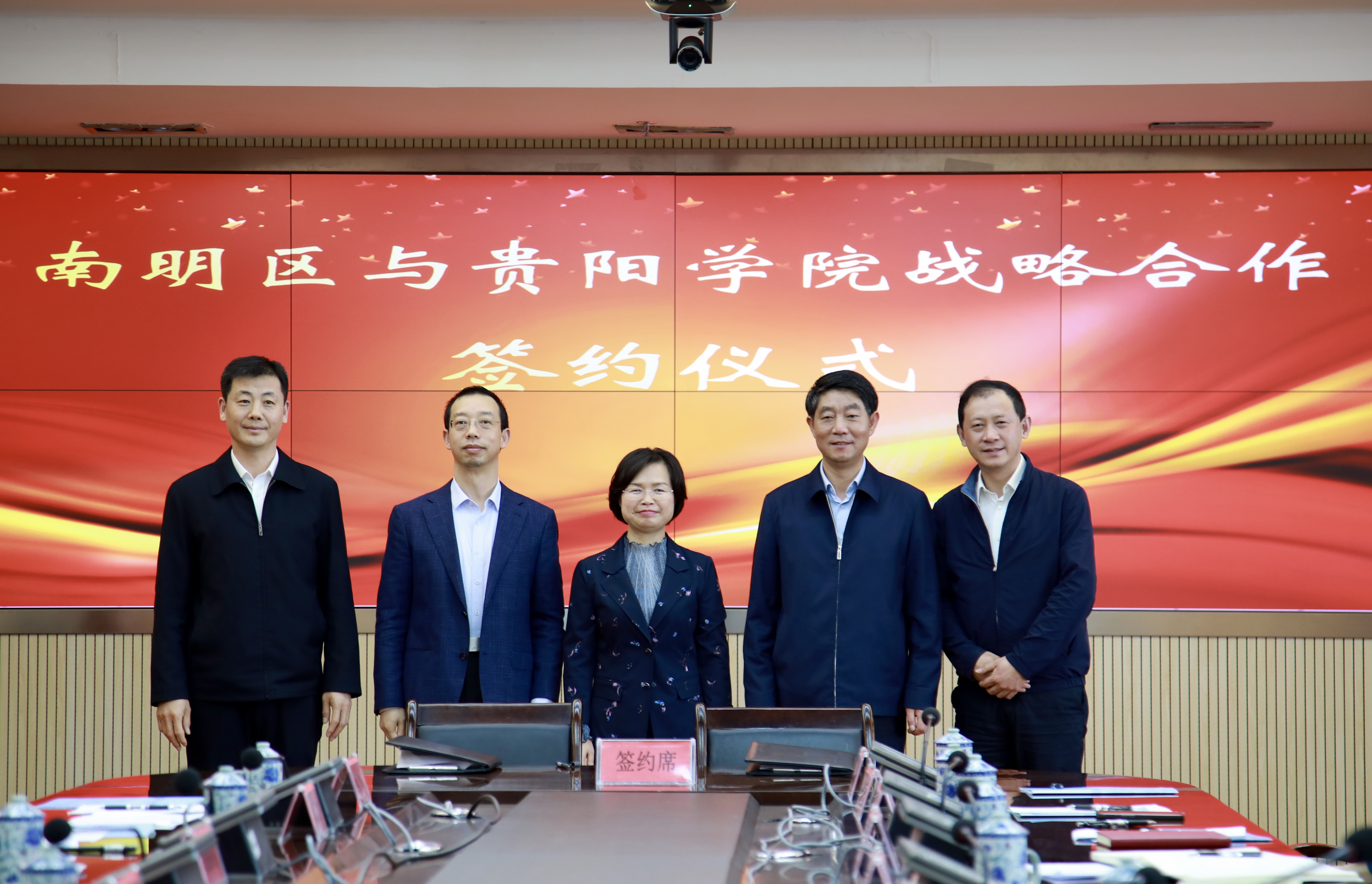 贵阳学院党委书记吕保平,党委副书记、校长邓朝勇,党委副书记焦艳、赵福菓,校领导汪建初、马力、刘刚、李灿;市人大常委会副主任、区委书记黄成虹,区委副书记、区人民政府区长刘桂均,区领导杜凌云、张媛、陈刚、胡亚英出席签约仪式。