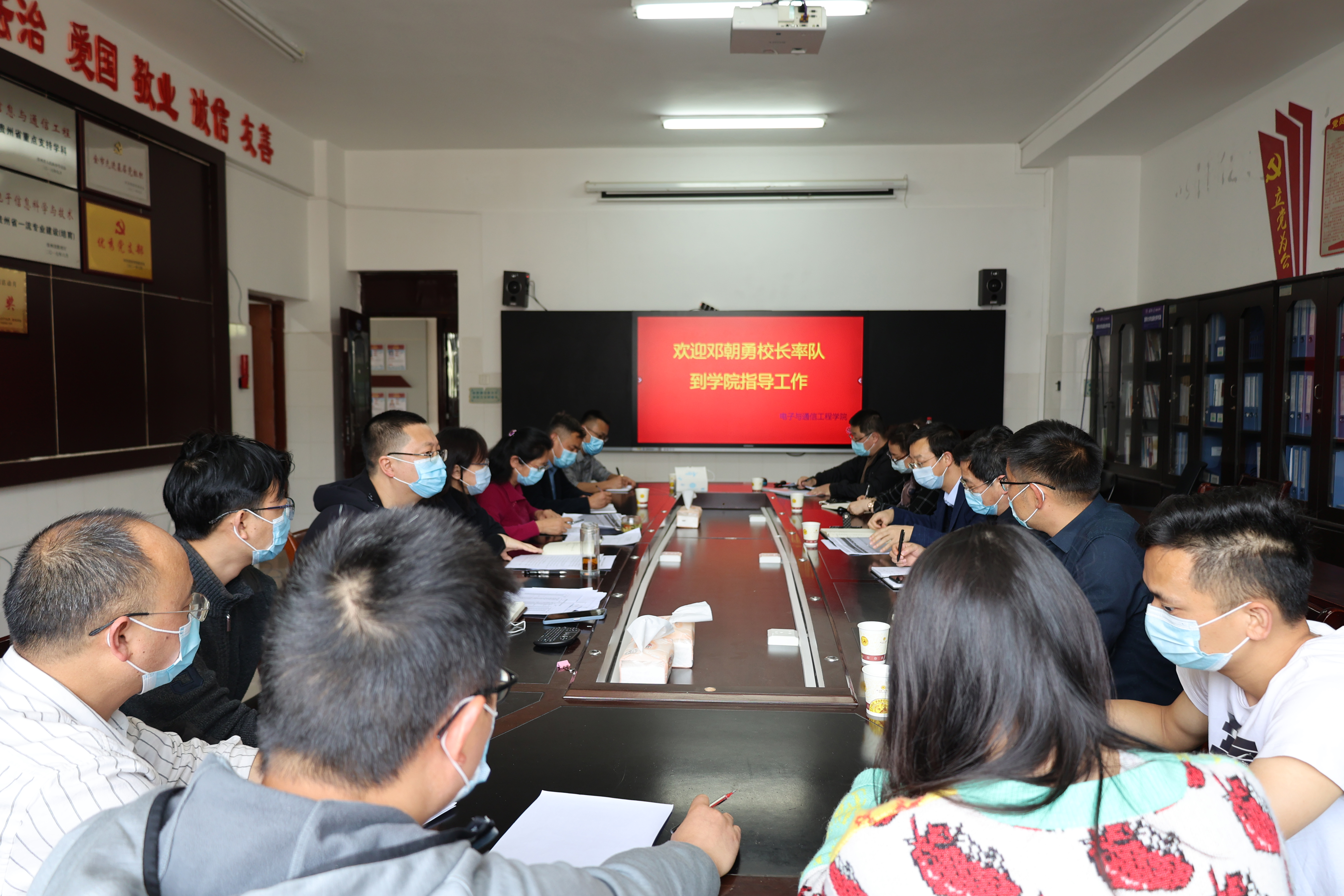 2022年4月12日下午,党委副书记、校长邓朝勇到电子与通信工程学院指导工作。院长办公室主任、教务处处长、学生处处长、招生就业处负责人陪同,电通学院党政班子成员、部分班主任参加了会议。