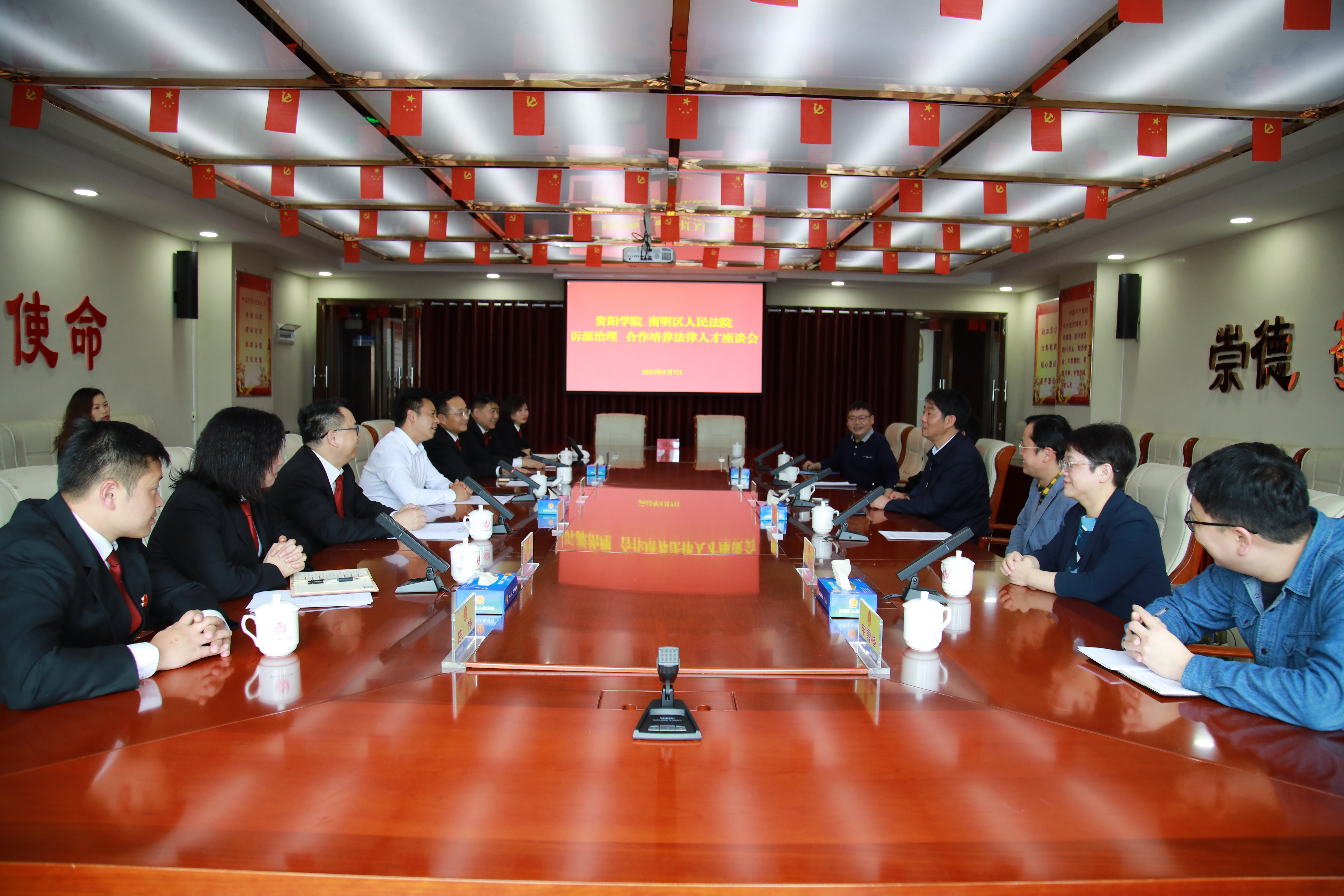 2022年5月7日下午,校党委书记吕保平到南明区人民法院调研我校法学专业就业情况,并与南明区人民法院党组书记、院长舒子贵,党组成员、副院长严波等相关负责人开展座谈会。