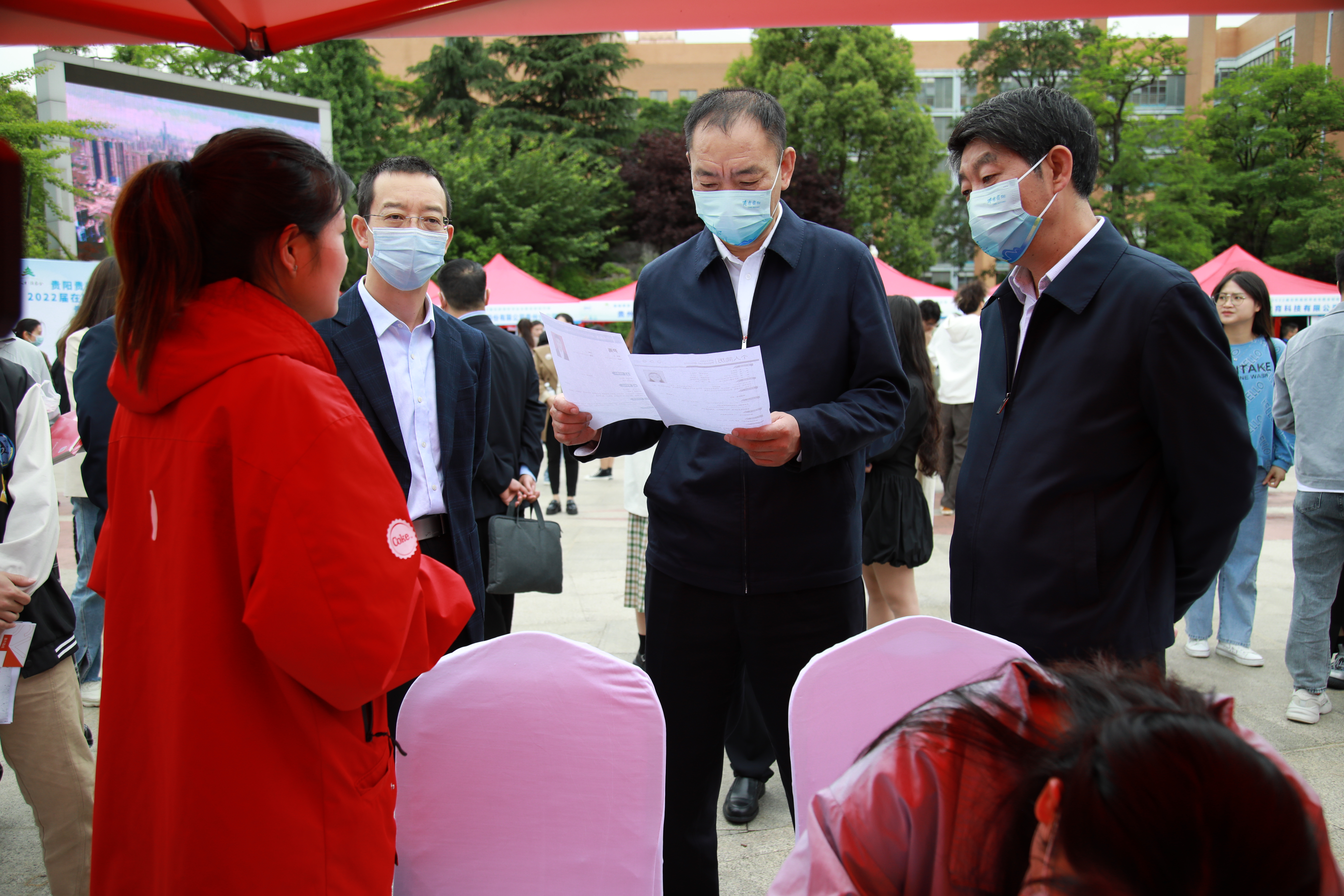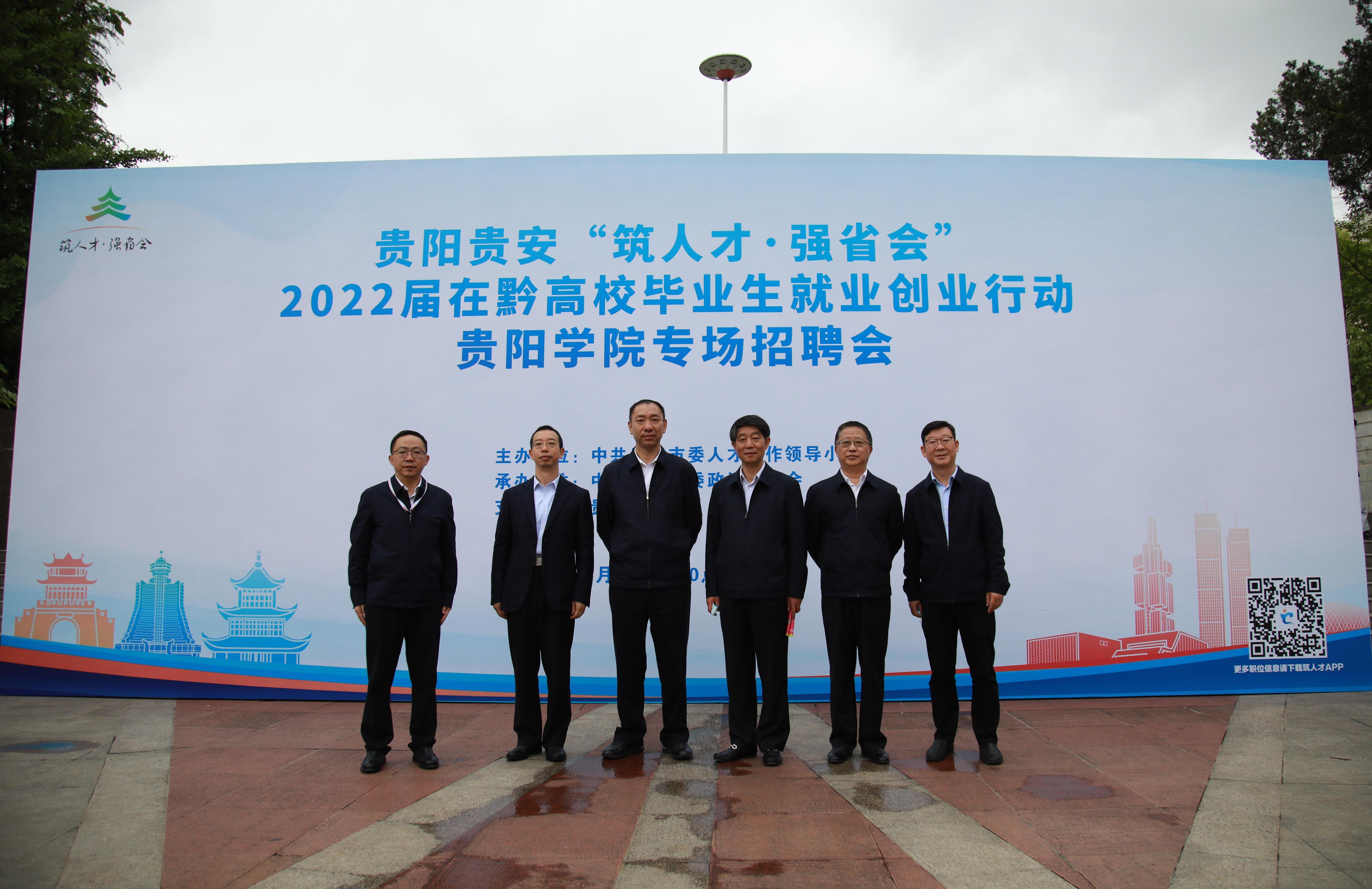 5月13日,由中共贵阳市委人才工作领导小组主办,市委政法委承办的“筑人才·强省会”2022年贵阳贵安“人才月”主题活动暨2022届在黔高校毕业生就业创业行动——贵阳学院专场招聘会举行。贵阳市委常委、市委政法委书记彭容江赴现场指导,贵阳学院党委书记吕保平,党委副书记、校长邓朝勇,市委政法委、贵阳学院有关负责人参加。