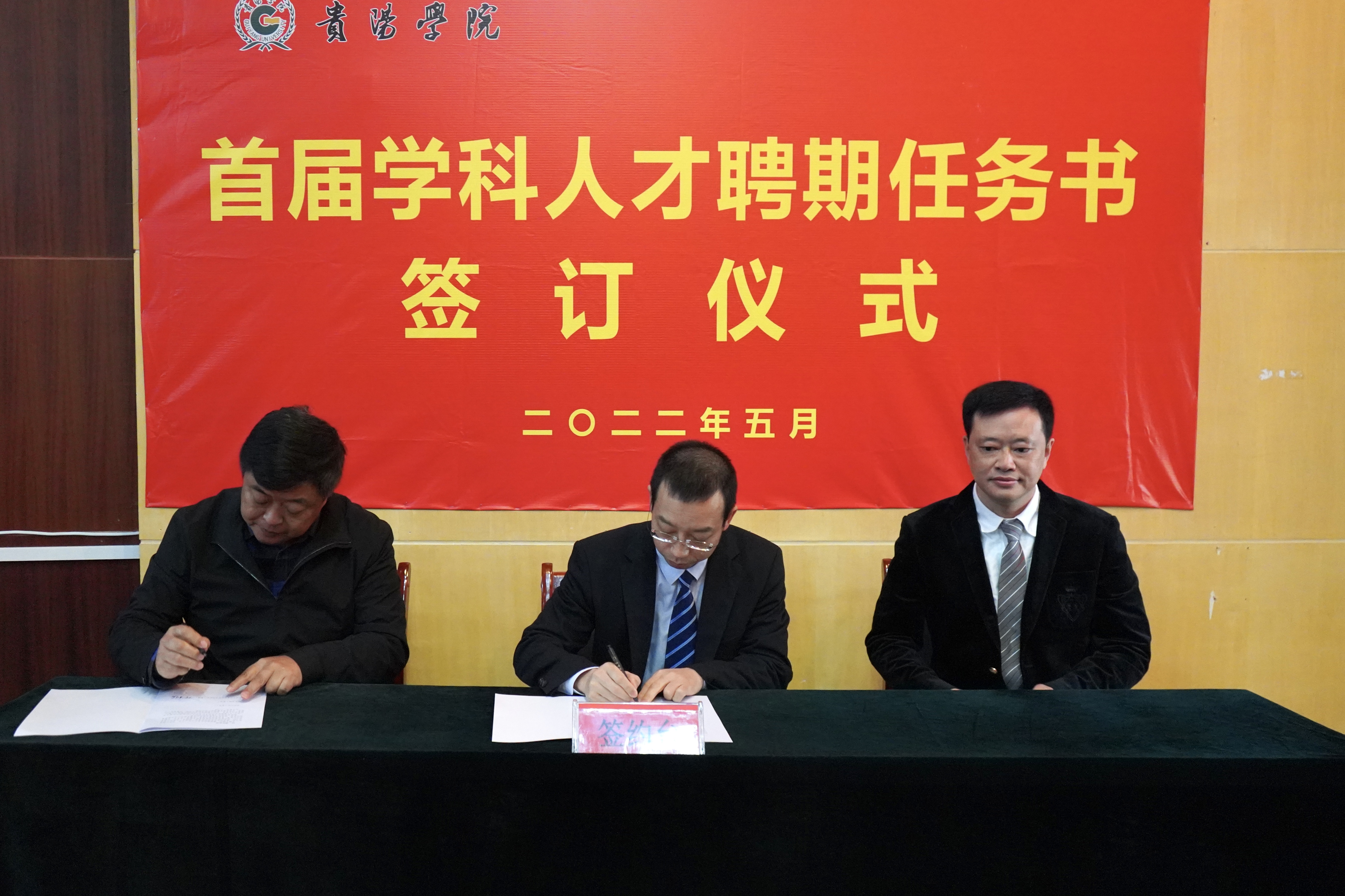邓朝勇代表贵阳学院与学科人才代表签订任务书,出席会议的校领导依次为首批79名“学科人才”颁发聘任证书。