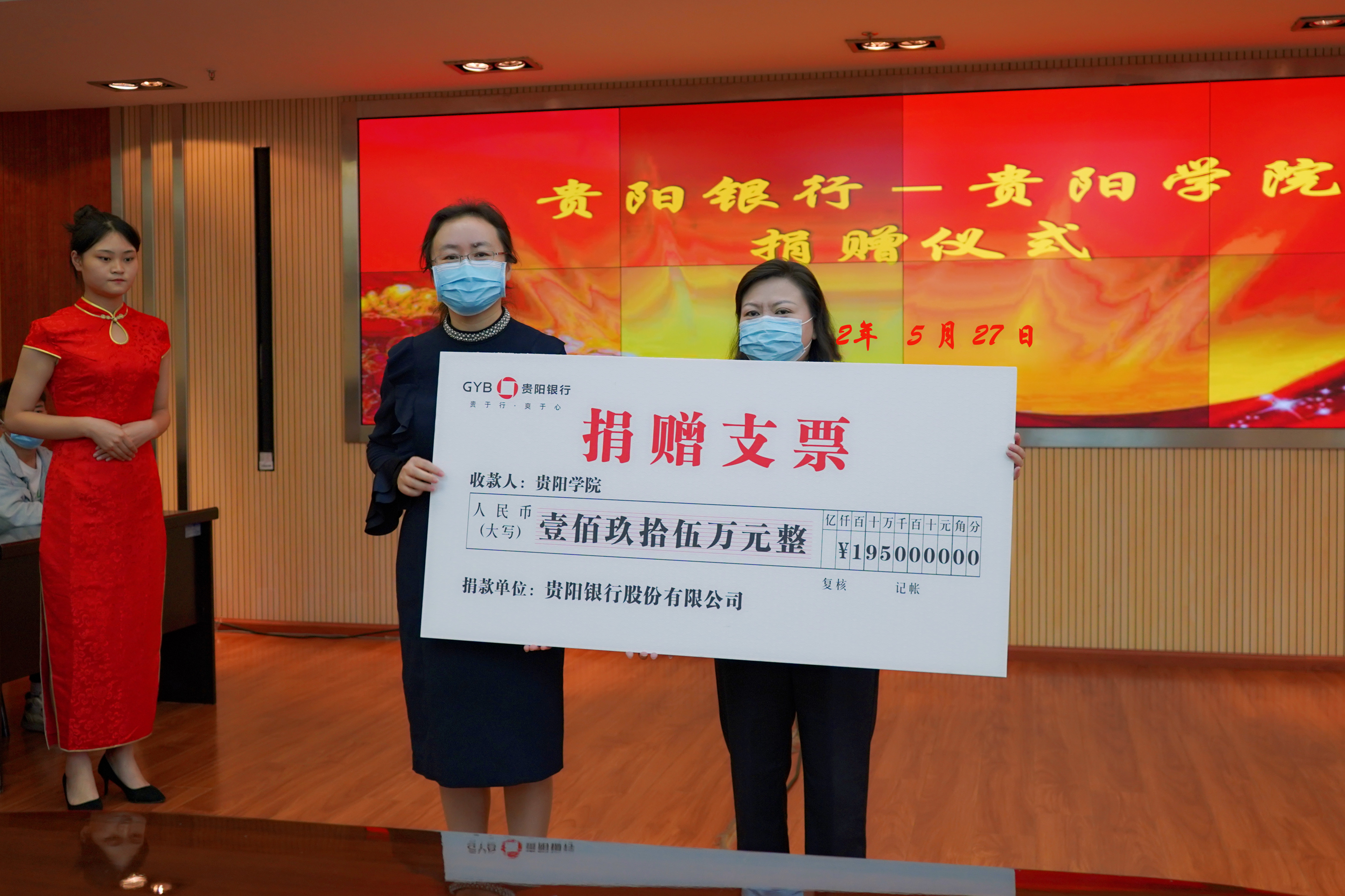 5月27日,学校在九思楼八楼会议室举行贵阳银行-贵阳学院高质量发展资金捐赠仪式,校党委副书记、校长邓朝勇,副校长刘刚,贵阳银行行长盛军、副行长李松芸、南明支行行长何芳等出席捐赠仪式,学校相关职能部门负责同志、部分专业学院负责人及学生代表参会。捐赠仪式由刘刚主持。
