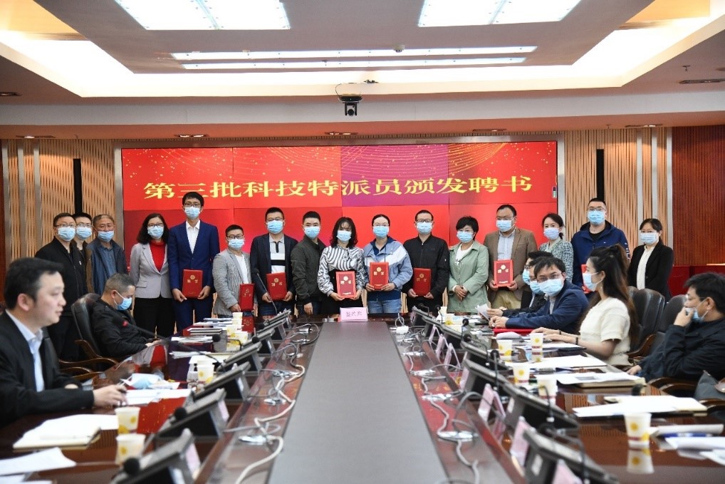 活动现场,贵阳学院、贵州双龙航空港经济区领导共同为第三批科技特派员颁发聘书。