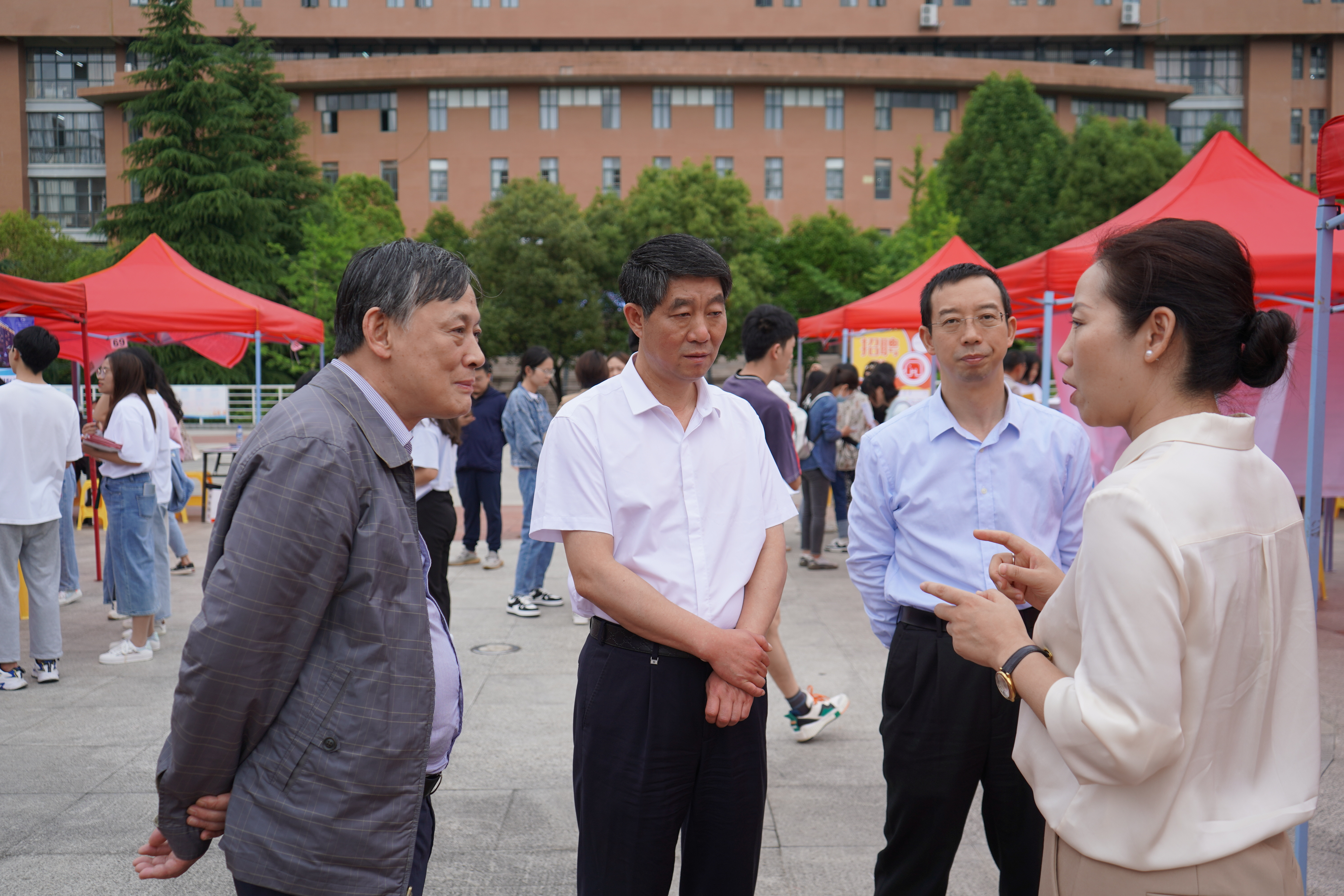 贵州省普通高等学校毕业生就业工作办公室主任张华、贵阳市大中专毕业生就业指导中心主任黄建军,我校党委书记吕保平,党委副书记、校长邓朝勇,副校长刘刚到现场调研指导。在调研中每到一处,详细询问察看学生的实习和就业情况,了解用人单位基本情况和就业岗位的需求情况。