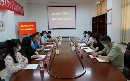 6月29日,云岩区委常委、宣传部部长况怡兰,云岩区融媒体中心主任钟关勇,副主任万钰,专题制作部部长李官杰到贵阳学院文化传媒学院交流座谈。校党委副书记赵福菓出席座谈会,文化传媒学院全体领导班子及教师代表参加座谈会。