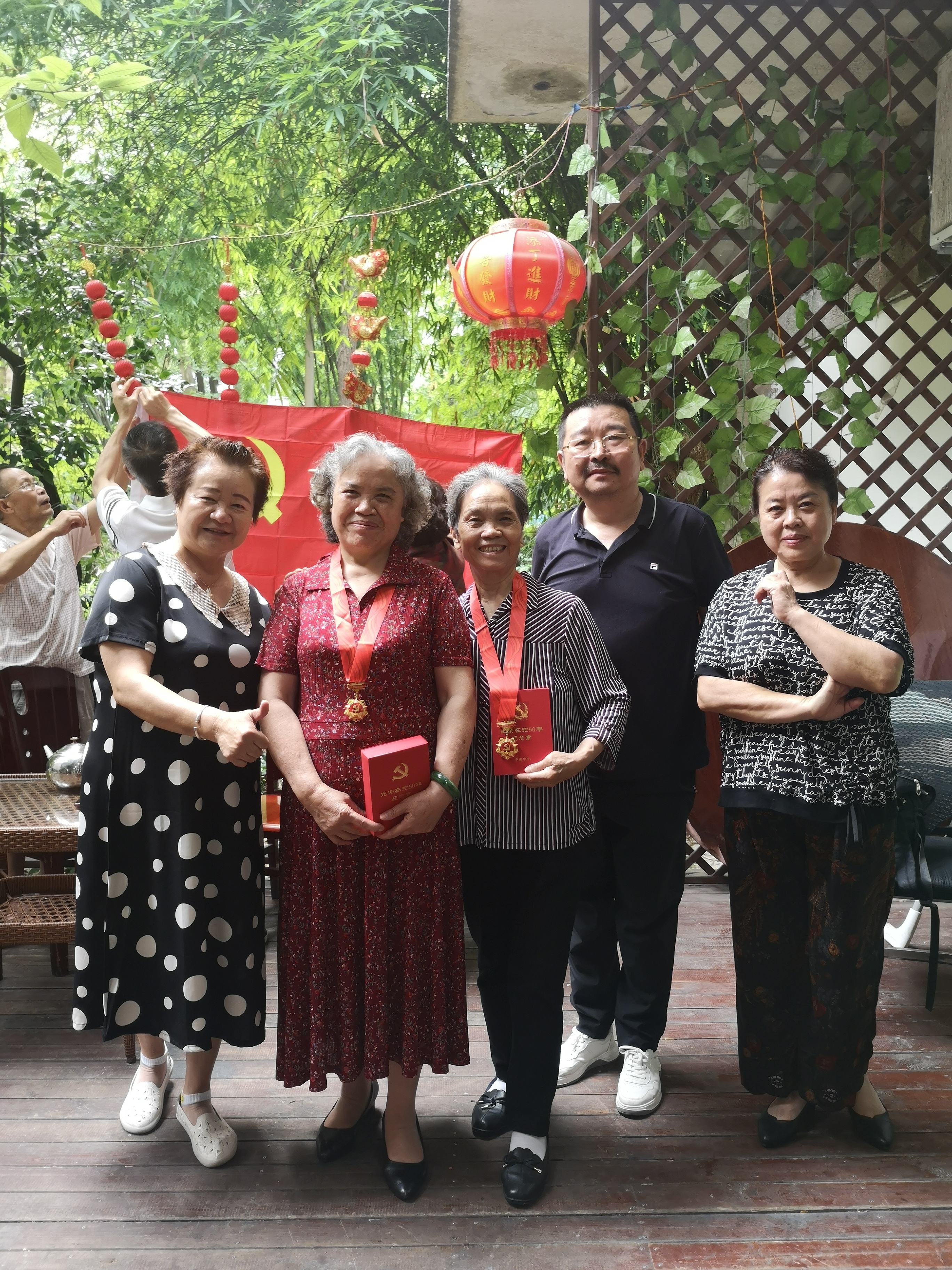 我校今年共有五名老党员获得“光荣在党50年”纪念章,离退休处根据退休党员的实际情况,采取了现场颁发、主题党日活动颁发、上门颁发三种方式。