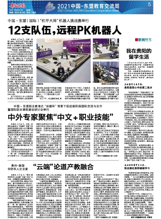 本报讯 9月26日,“贵州·泰国华侨华人企业家‘云端’论坛”在中国-东盟教育交流周期间举行。