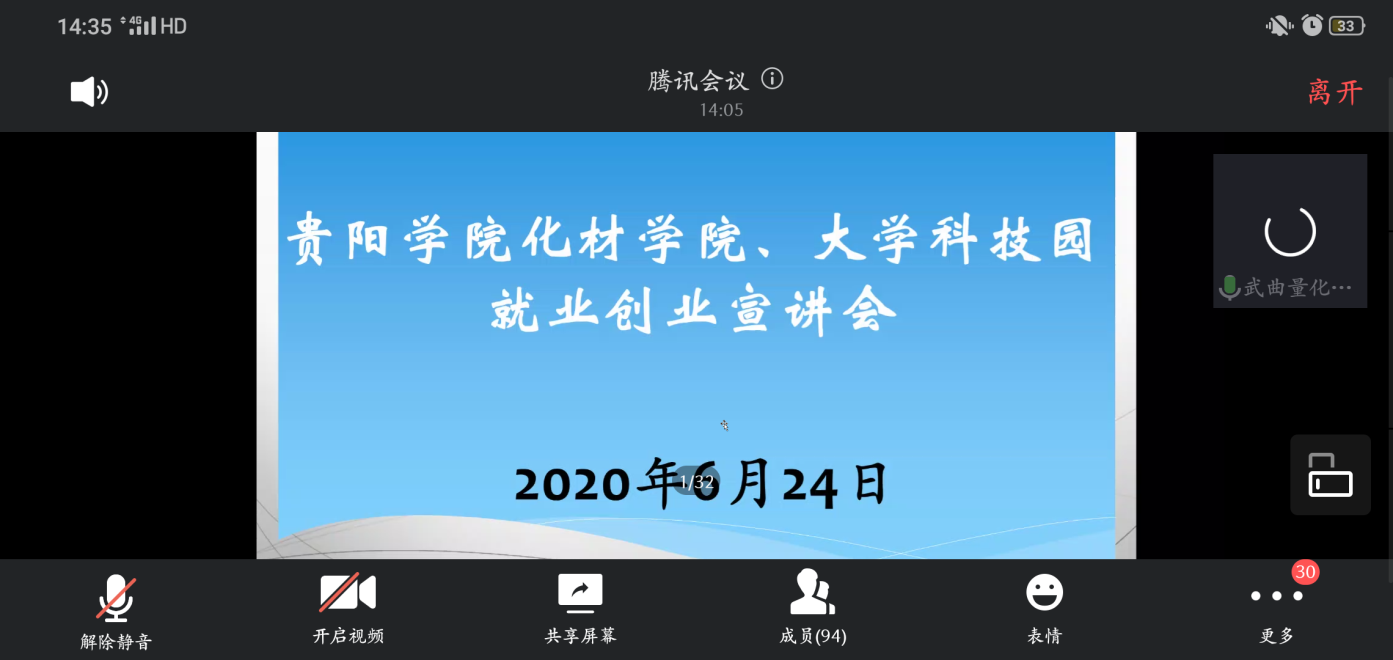 经化材学院党总支前期动员,117名毕业生按时进入了线上会议室,听取宣讲会上两位指导老师对就业创业形势和政策的讲解。宣讲会由化材学院就业指导老师曾加主持,曾老师首先向同学们介绍了今年的就业形势和学校的就业政策,接着由大学科技园管理中心创业导师梁进进对我校的创新创业政策、帮扶措施等进行了详细的讲解。最后同学们自由提问,两位指导老师解答了同学们对就业创业的各种具体问题。